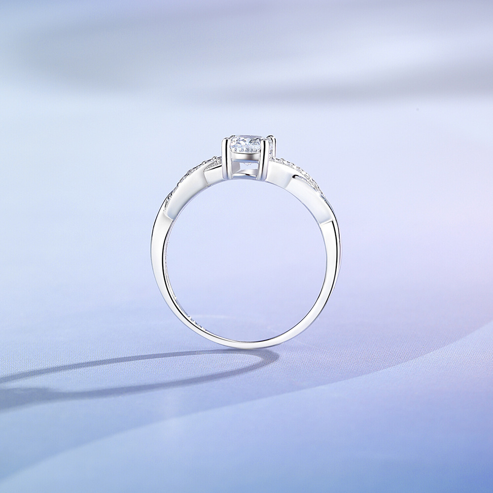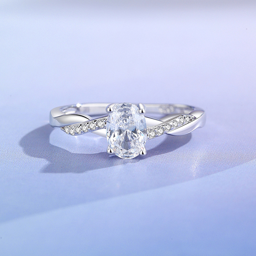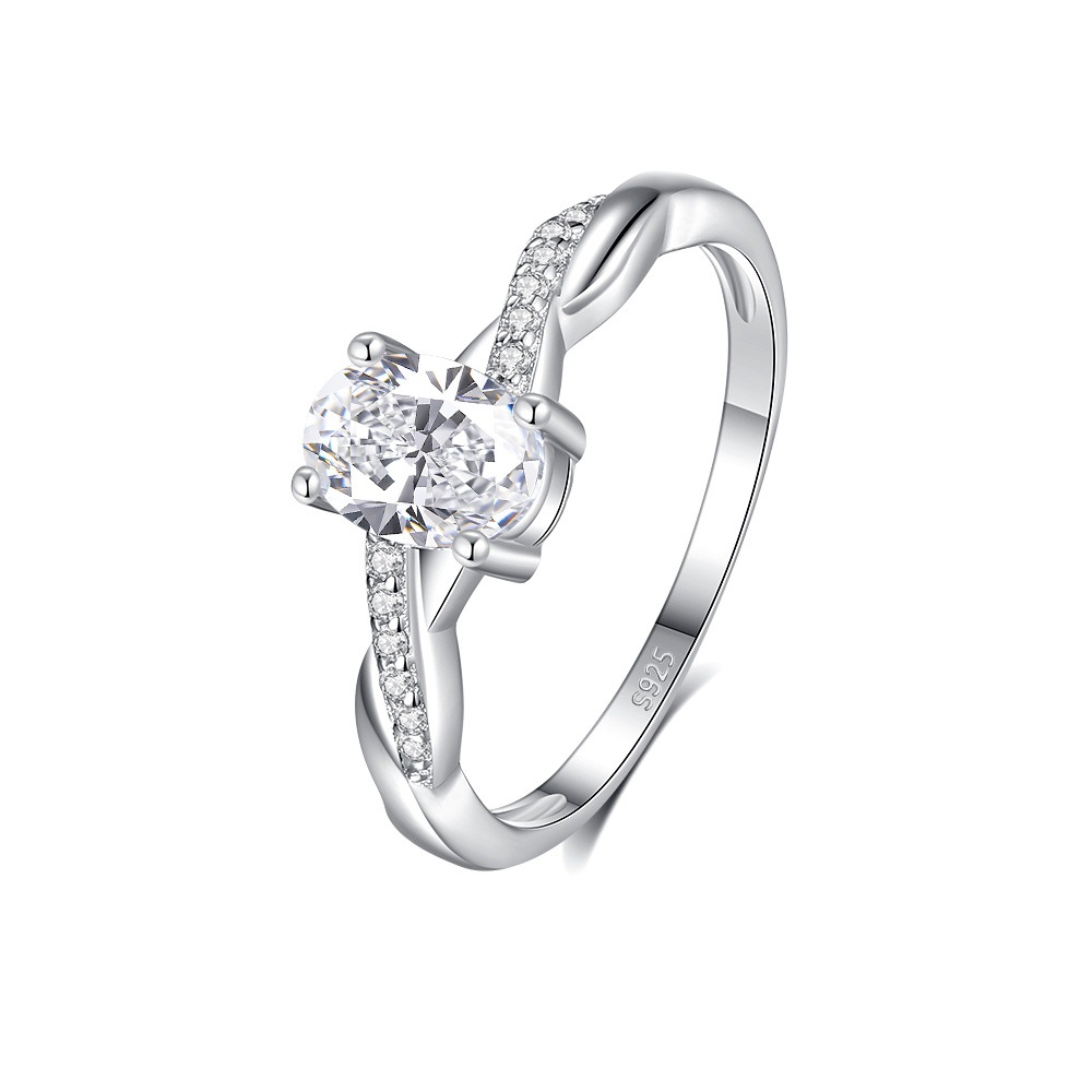 S925纯银扭纹莫比乌斯旦形锆石戒指女生欧美轻奢椭圆仿真钻食指环