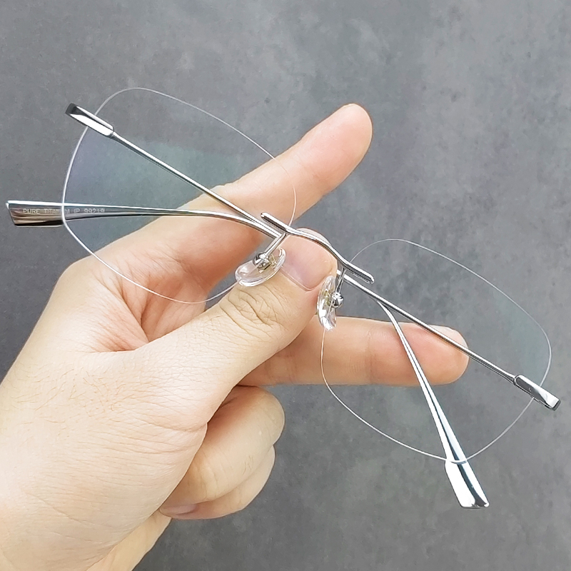 无边框眼镜女超轻纯钛防蓝光抗辐射近视可配度数散光变色眼睛片男