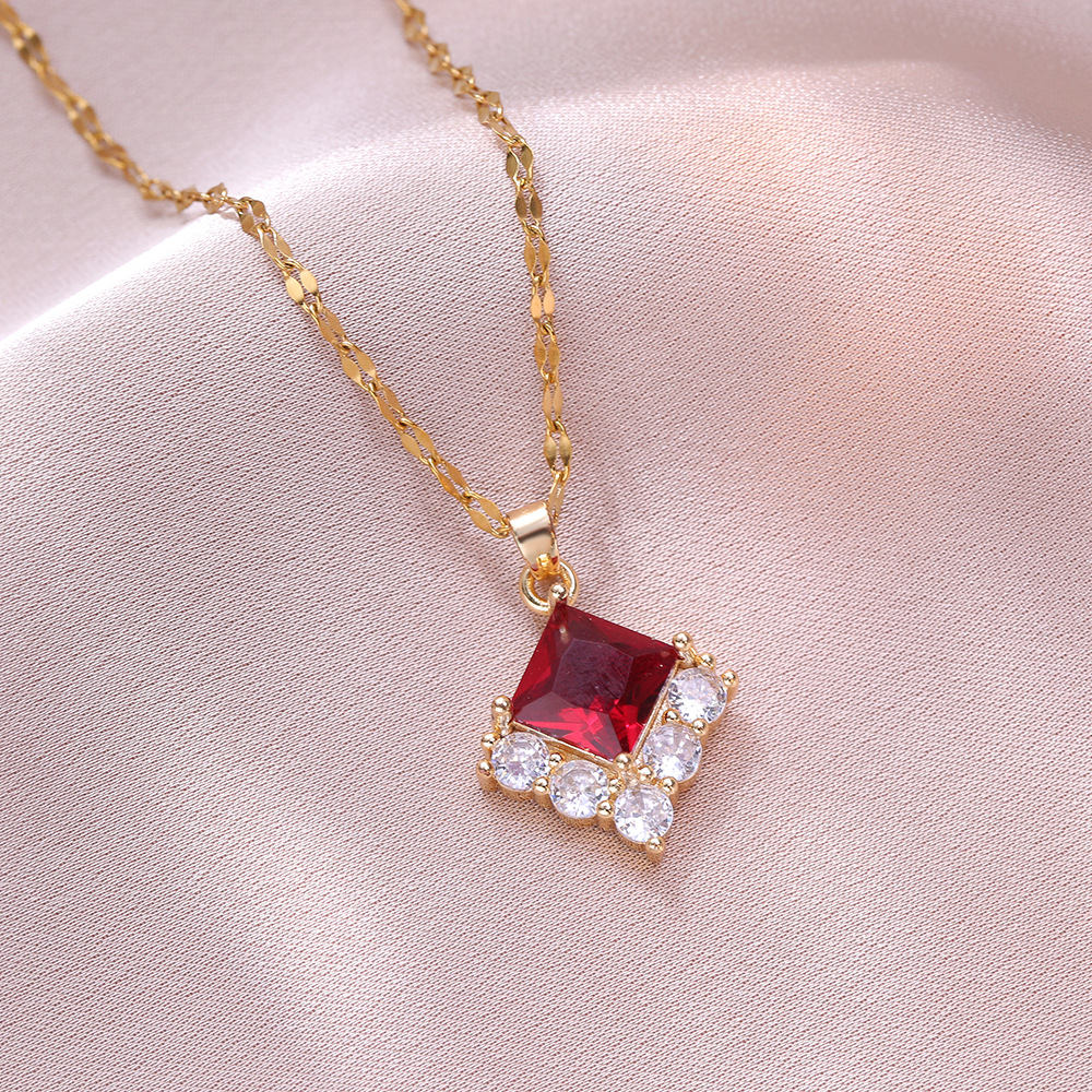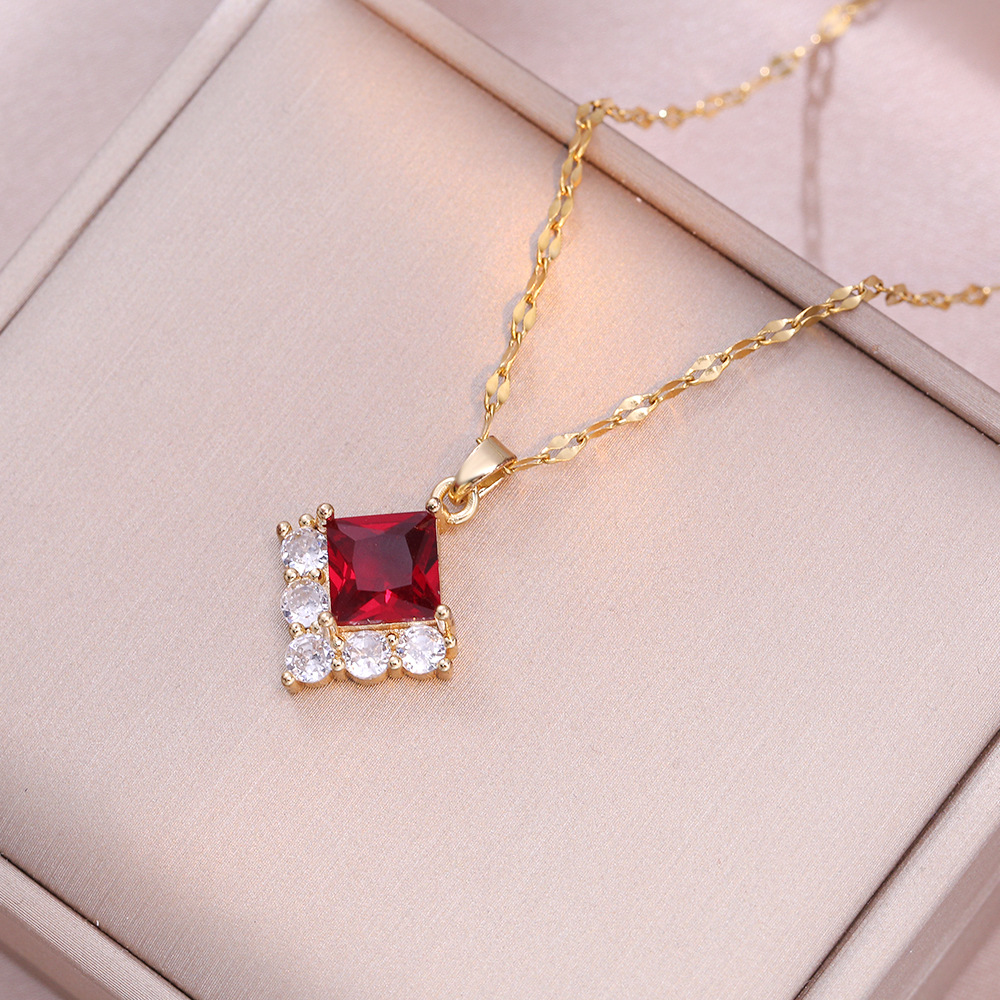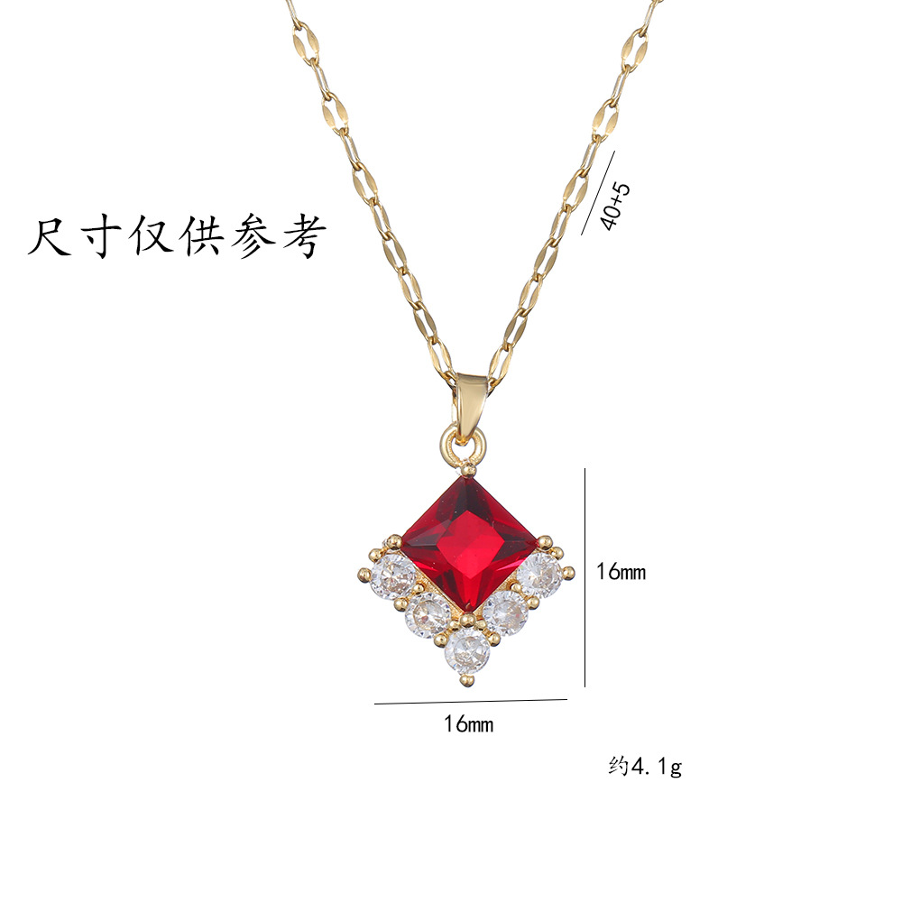 项链女网红红色锆石几何小众时尚新款设计感吊坠气质简约钛钢项链