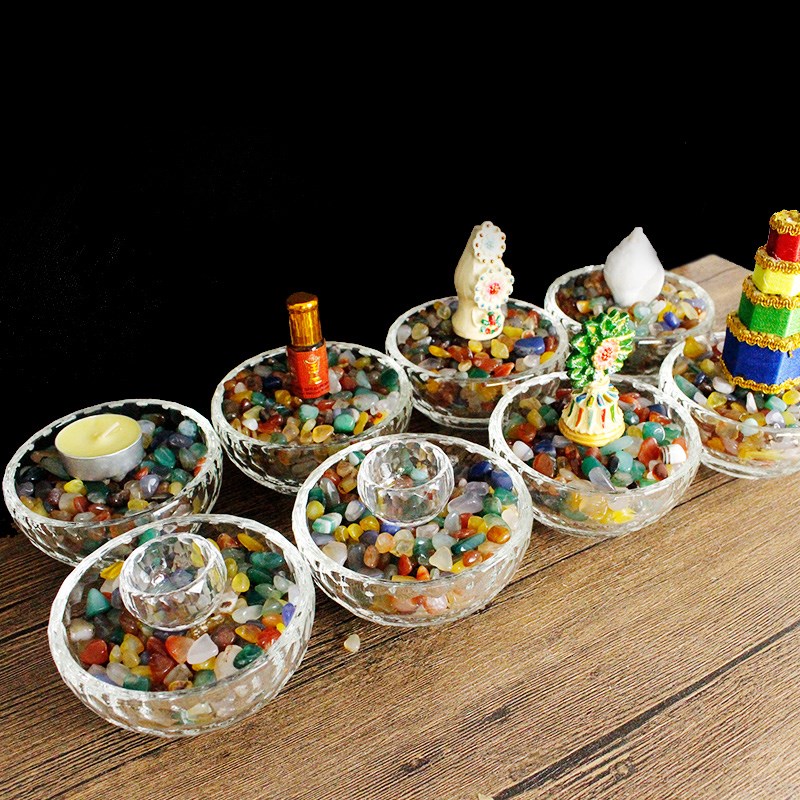 速发藏传佛八前吉祥水晶供水碗七件石朵玛食子供具摆宝八供全套装