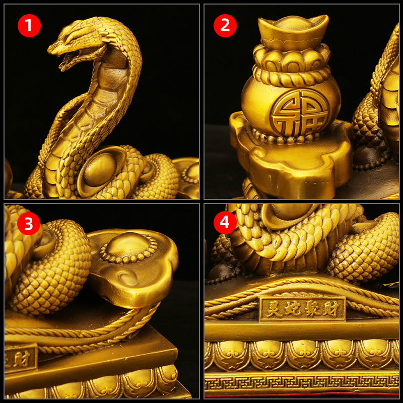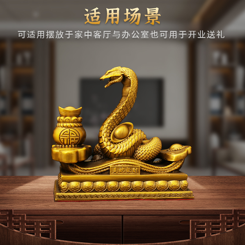 铜十二生肖蛇摆件纯黄铜如意蛇摆件桌面装饰品书柜玄关工艺品家居