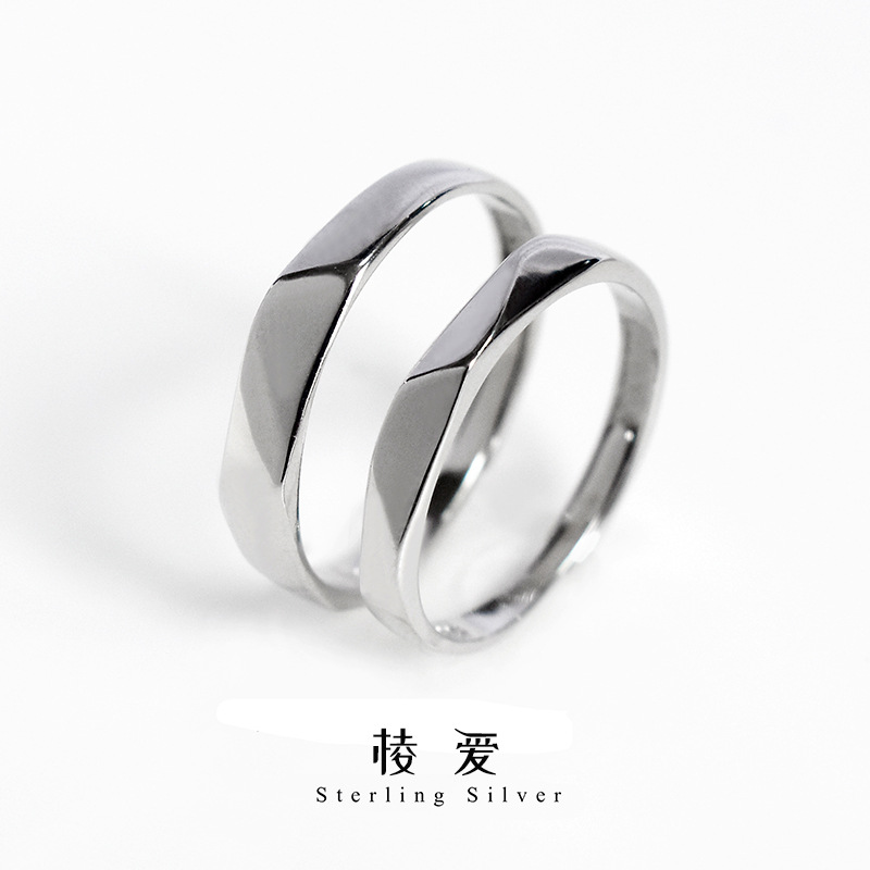 刻字极简切面925纯银情侣对戒chic日韩百搭棱面活口男女戒指学生
