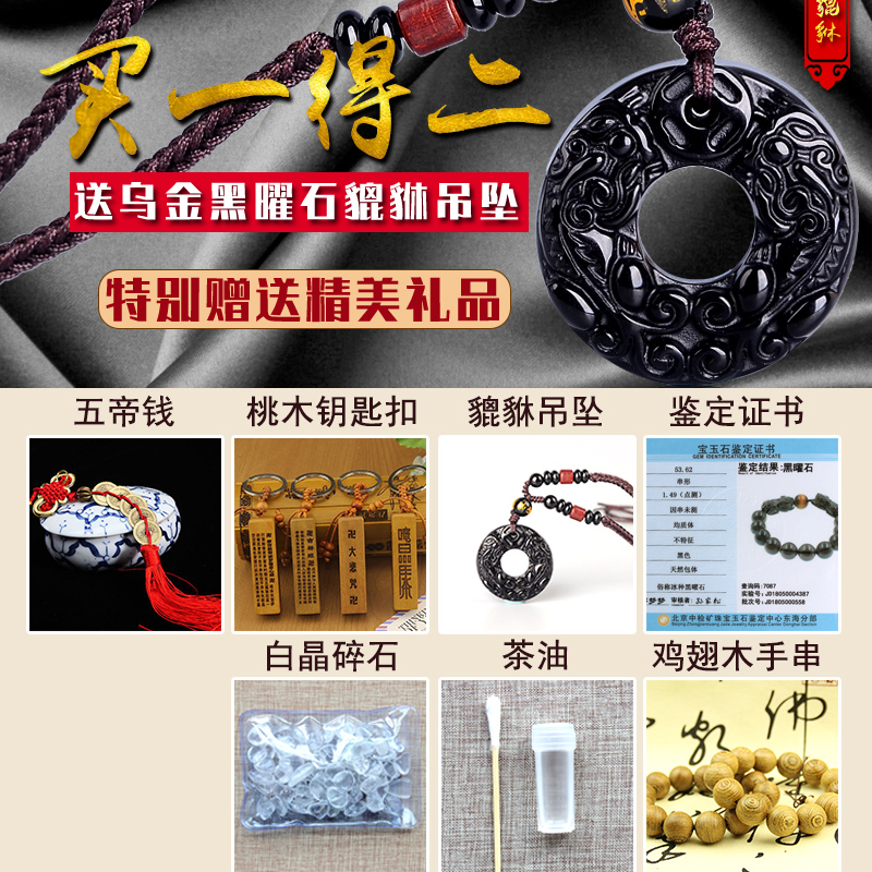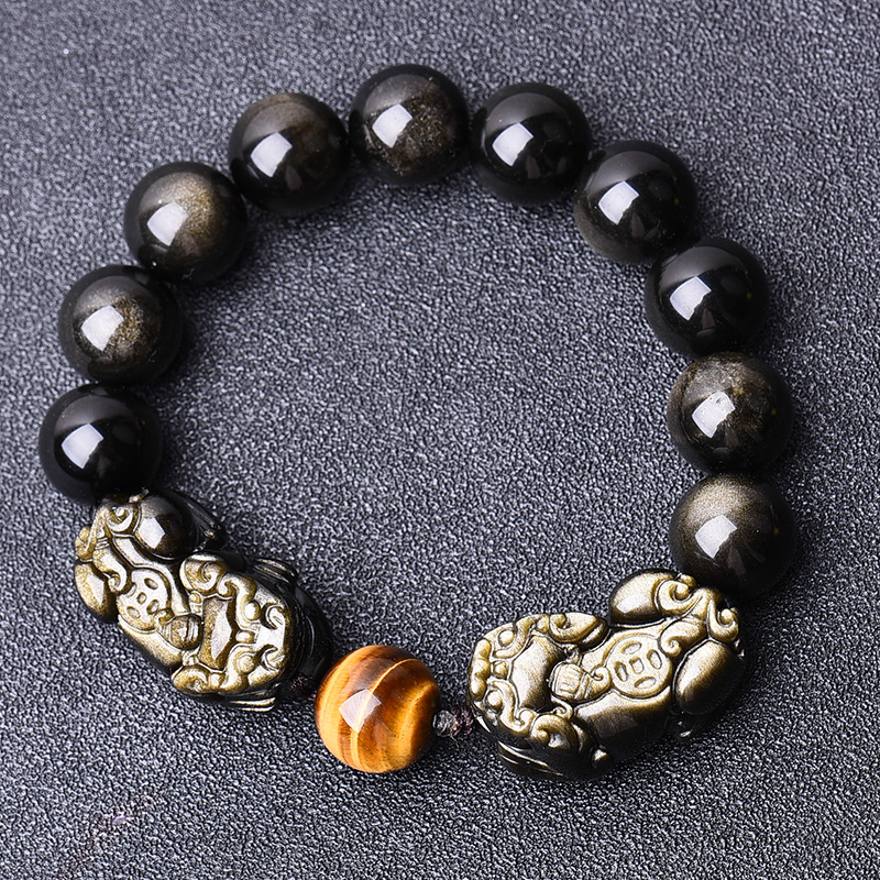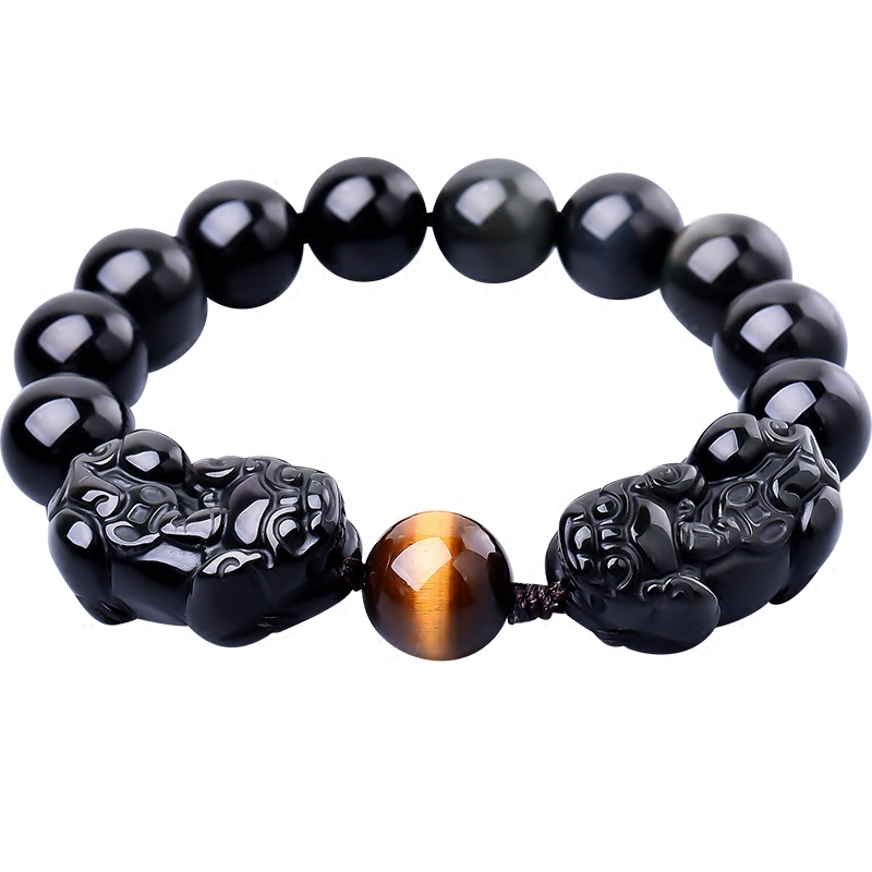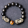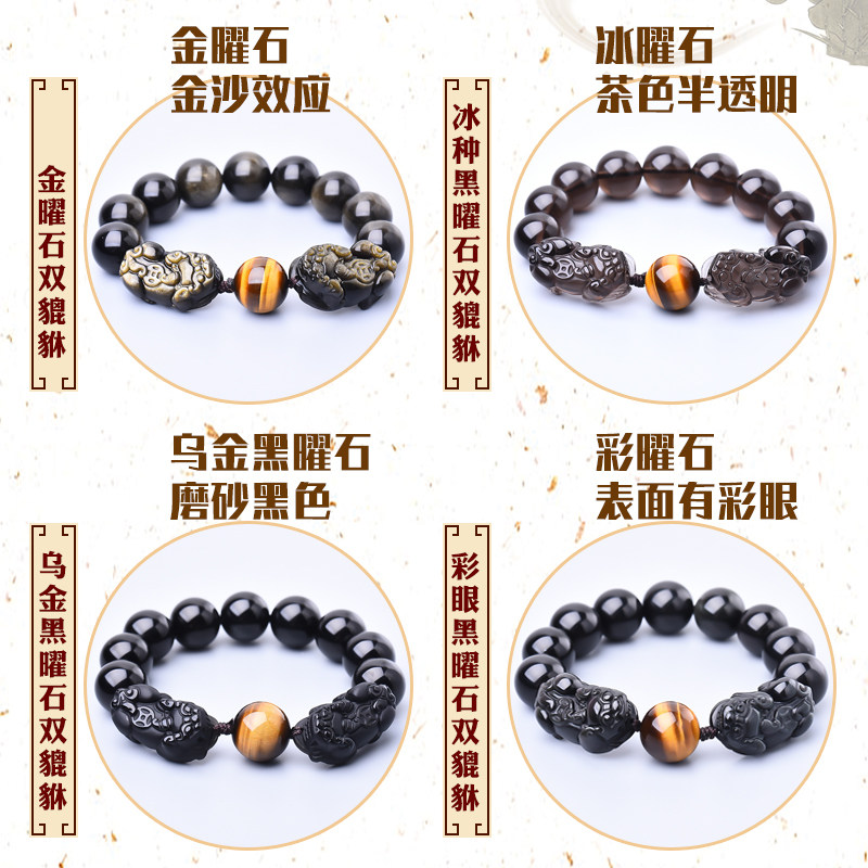 千瑟天然水晶黑曜石双貔貅手链男女金曜石皮丘手串玉石黑耀石貔犰