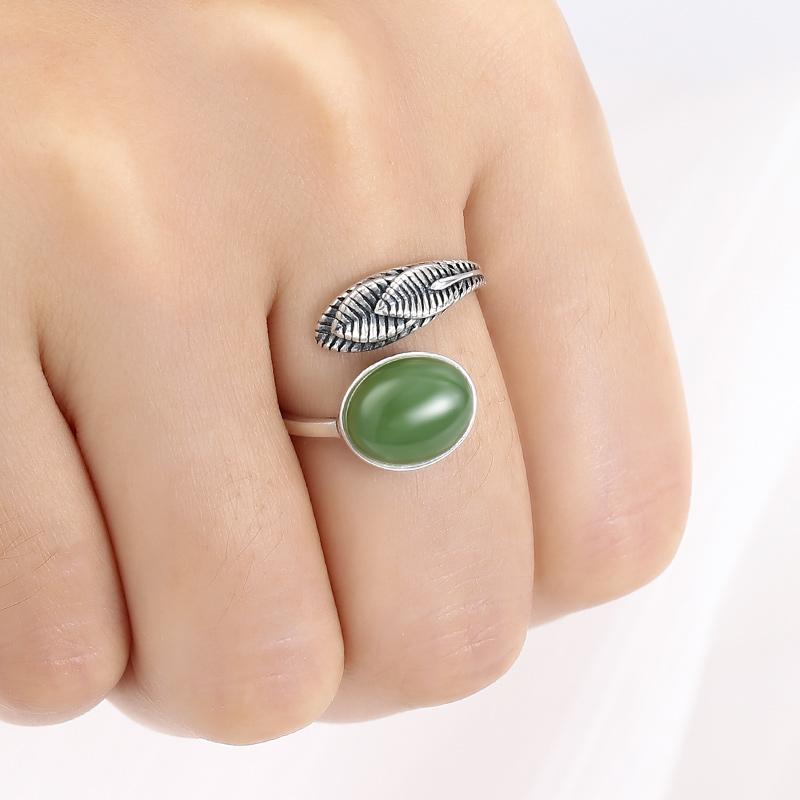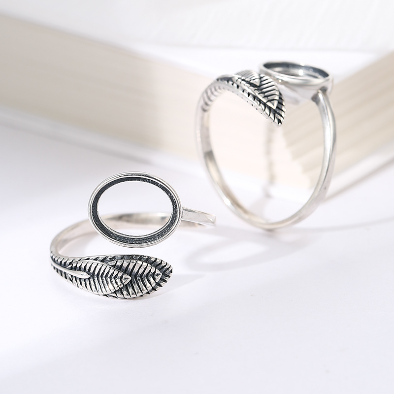 925纯银戒指空托女7*9羽毛复古戒托空托古法金琥珀碧玉戒托6*8*10