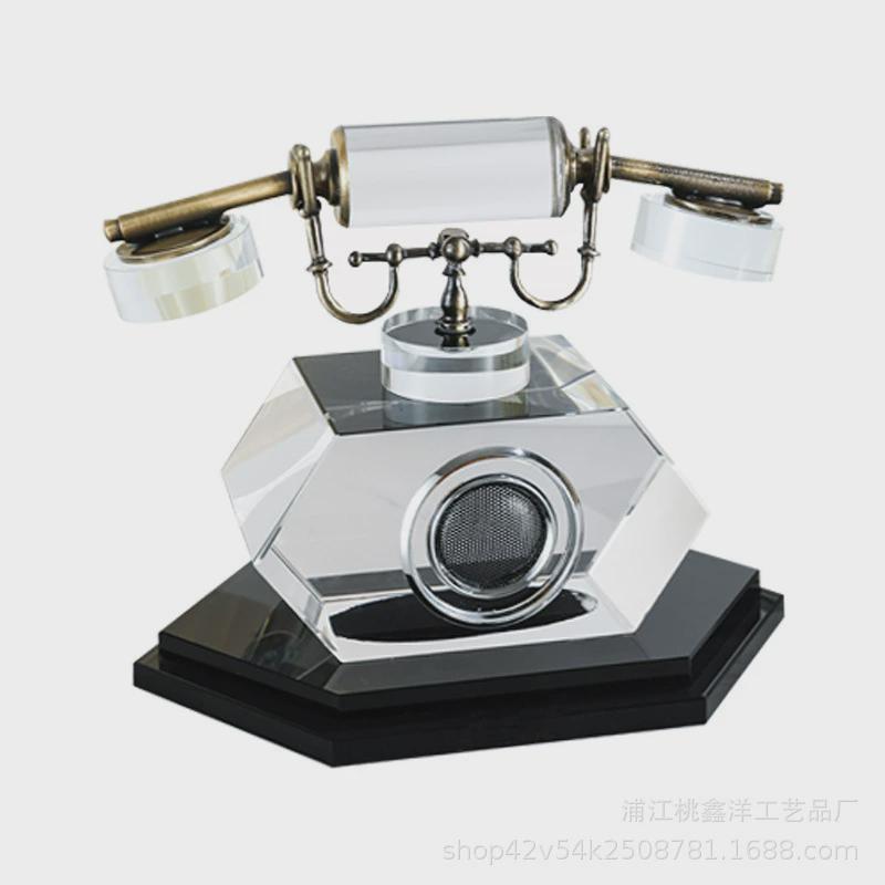 现代复古水晶电话机摆件样板间销售售楼处中心桌面客厅工艺装饰品