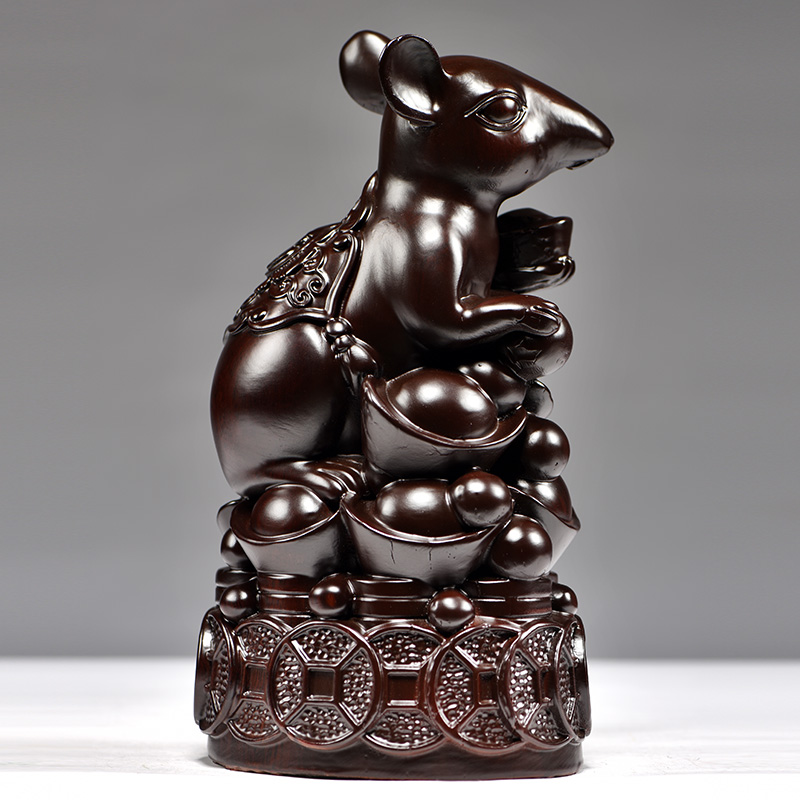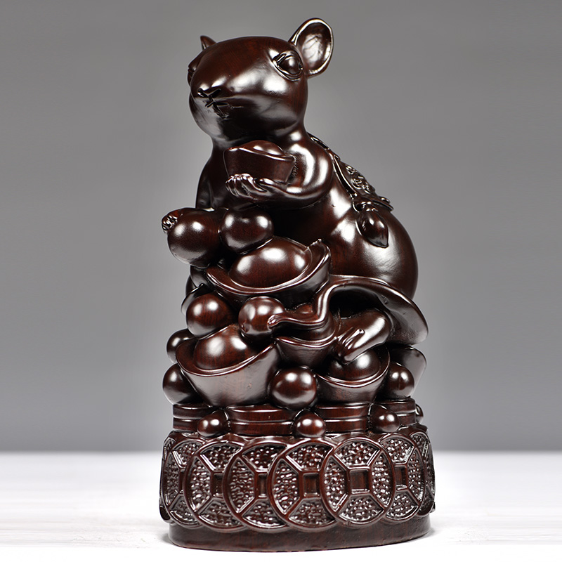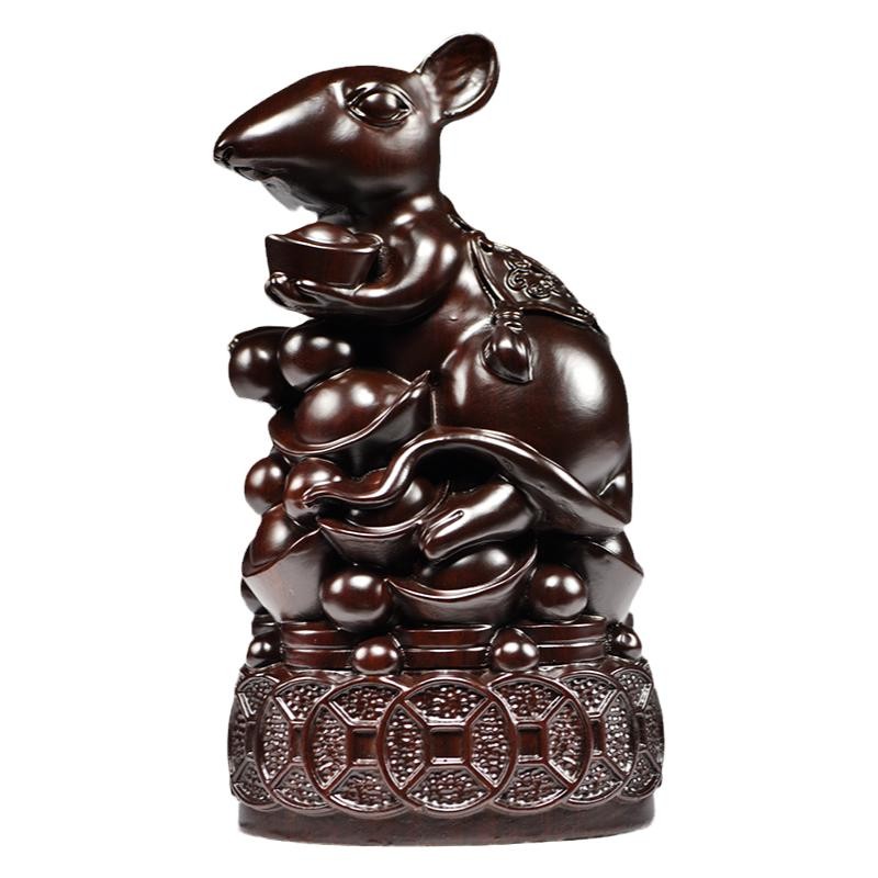黑檀木雕老鼠摆件十二生肖木质鼠家居客厅装饰红木工艺品开业送礼
