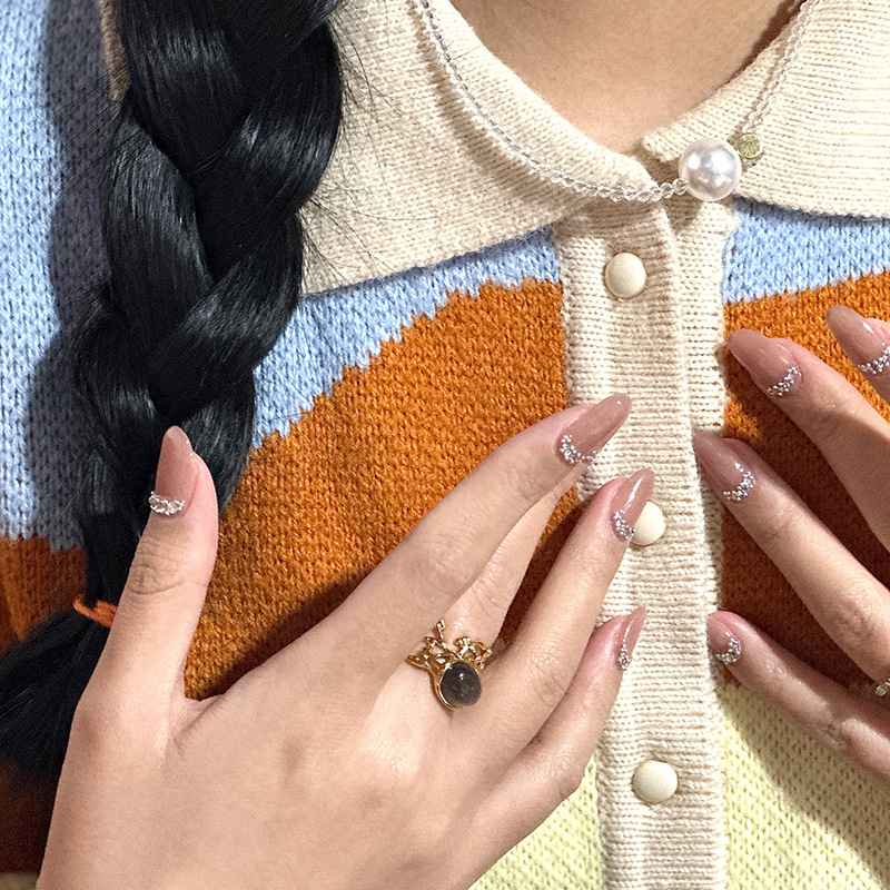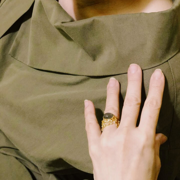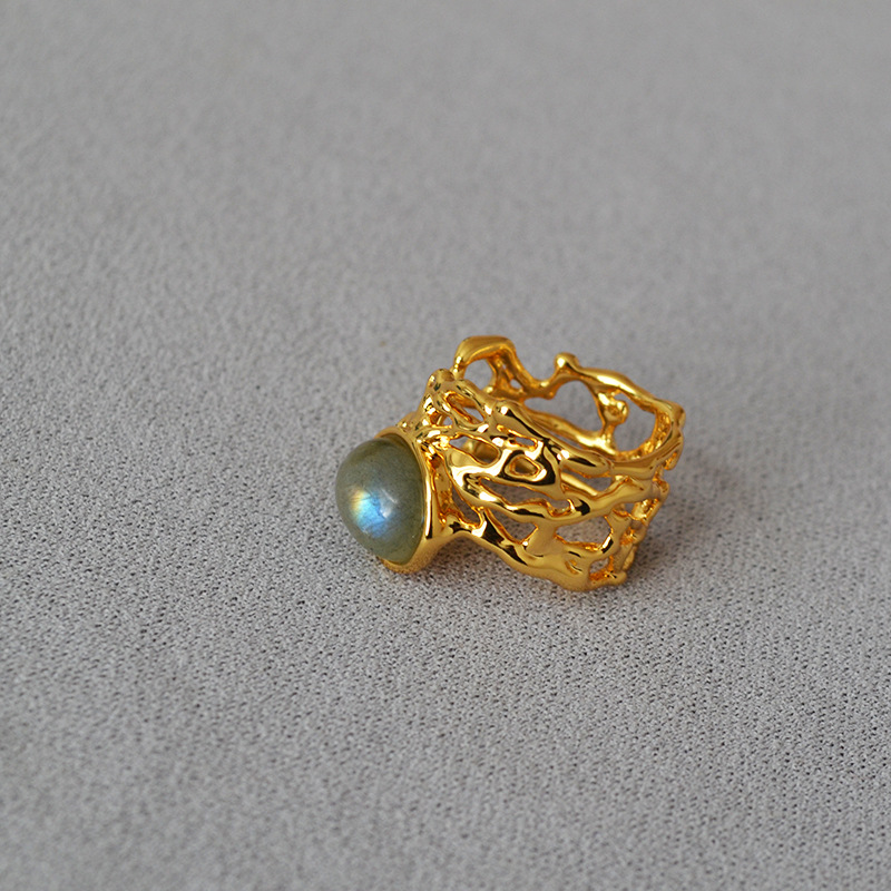 Sasa同款法式小众复古文艺宫廷风鸟巢镶嵌月光拉长石戒指食指戒女