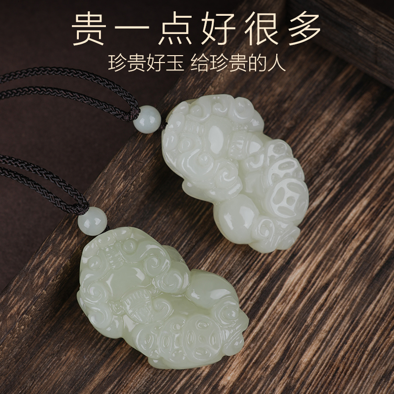和田玉貔貅吊坠男款女项链玉石皮丘招财情侣霸王貔貅挂件玉坠玉佩