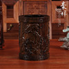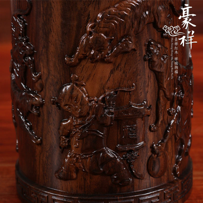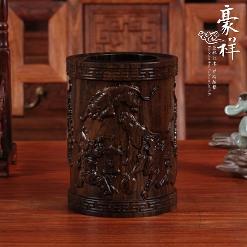 黑檀木红木虎虎生威笔筒红木质笔筒圆形文房四宝实木质笔筒
