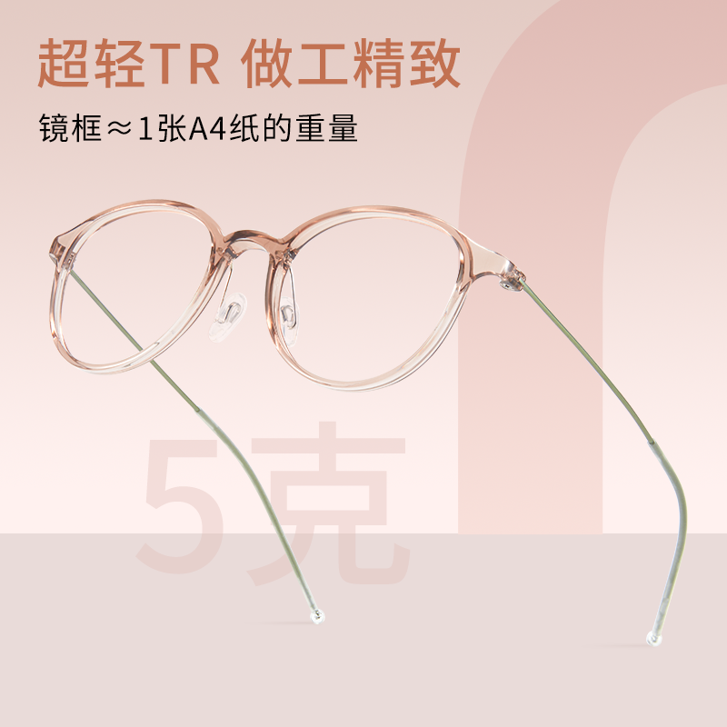 久森透明茶色镜框眼镜可配度数设计款小众眼睛透明粉文艺显白5310