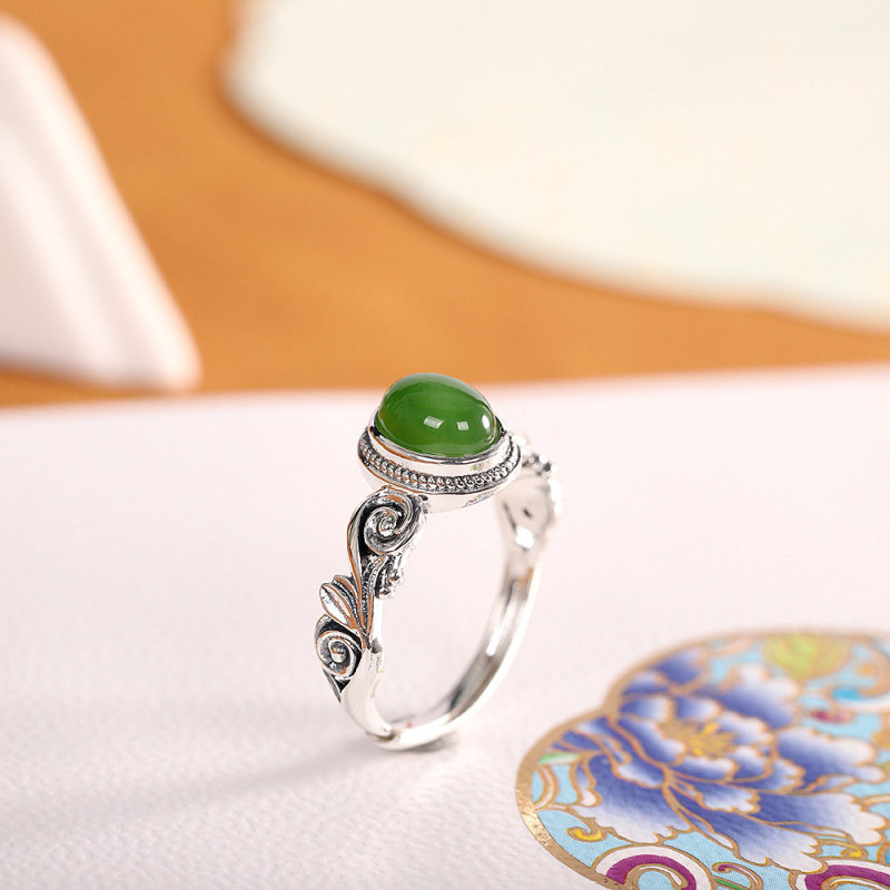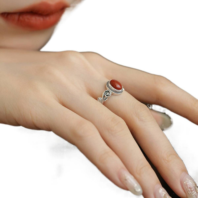 新品新款复古新中式国风蛋形红色石头戒指女民族风食指戒