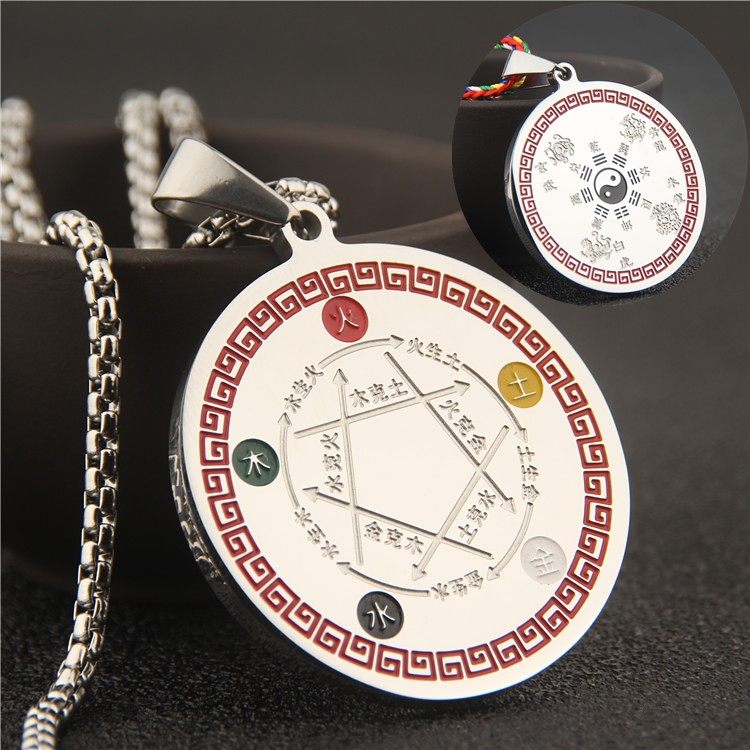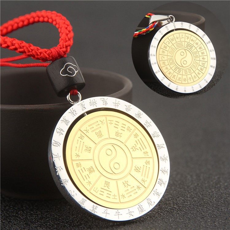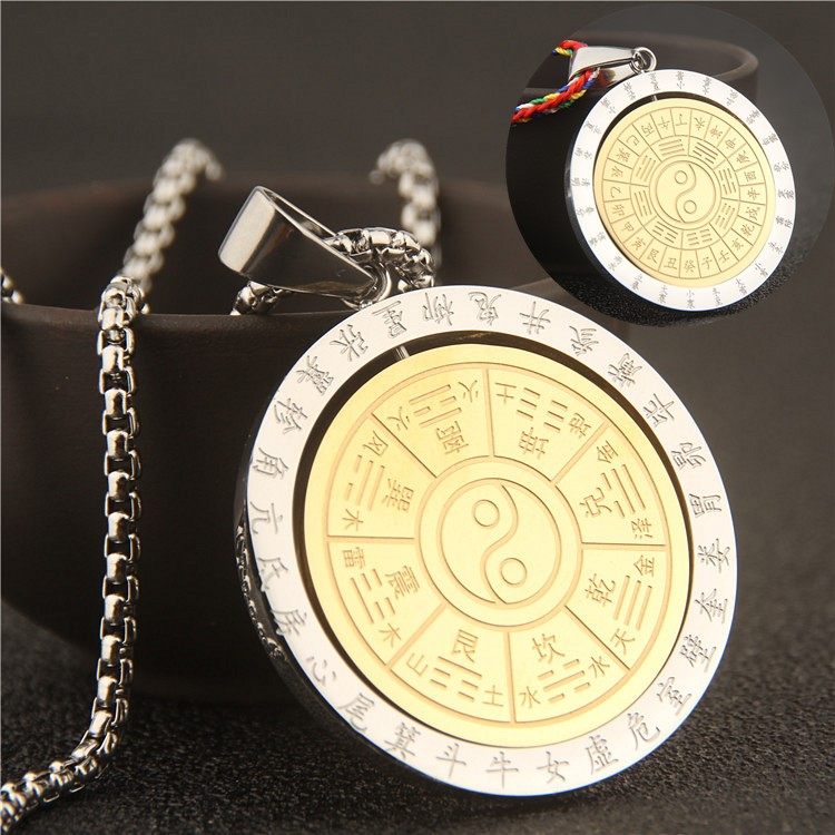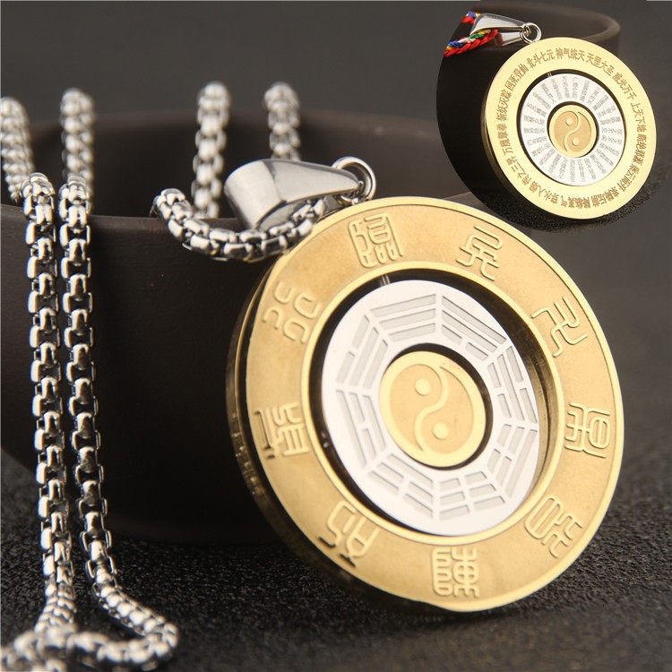 不锈钢可转动阴阳鱼五行先天八卦挂脖子金木水火土吊坠项链护身符