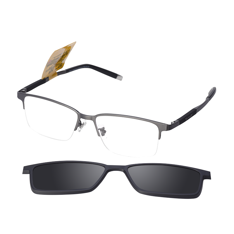 Jeep吉普经典半框近视眼镜架男大脸记忆钛镜框磁吸套镜宽脸T7086B