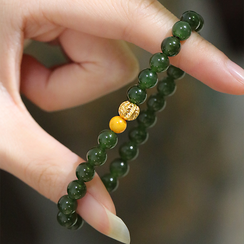 SUMOJEWEL【春山晓月】天然和田玉足金核桃新中式国风手链百搭
