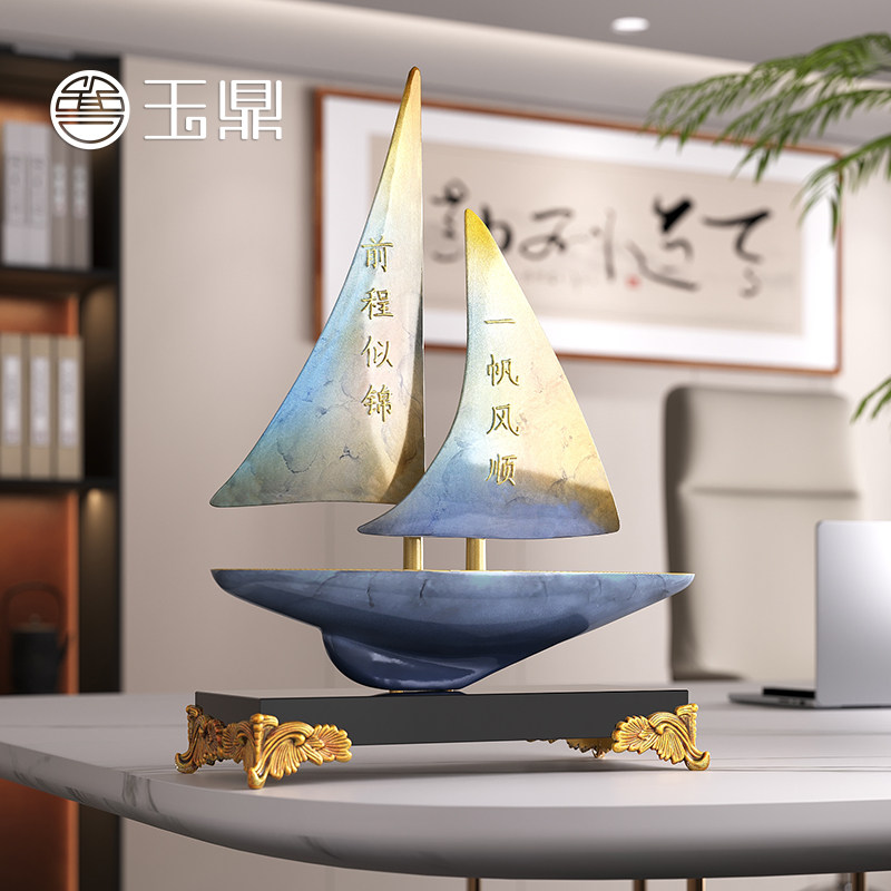 高档风顺帆船摆件乔新中式工艺礼品摆饰客厅玄关办公室装一饰品帆