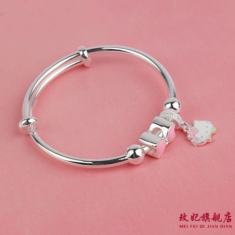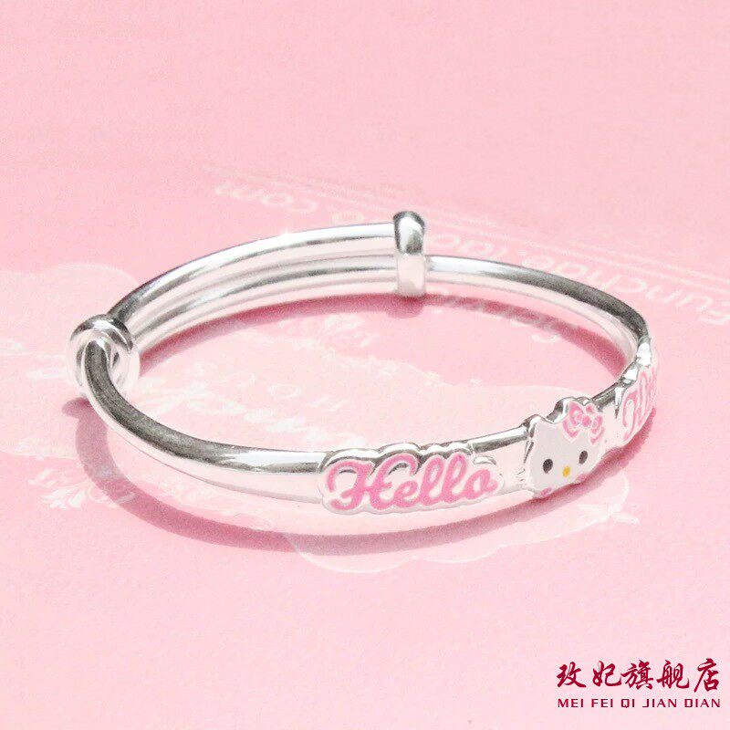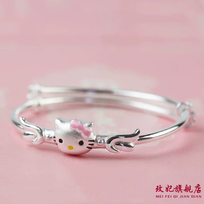 玫妃正生kt猫纯银手镯足银9999女宝宝小孩子儿童中大童学生童镯