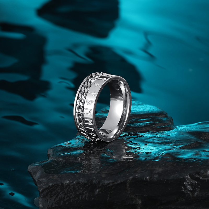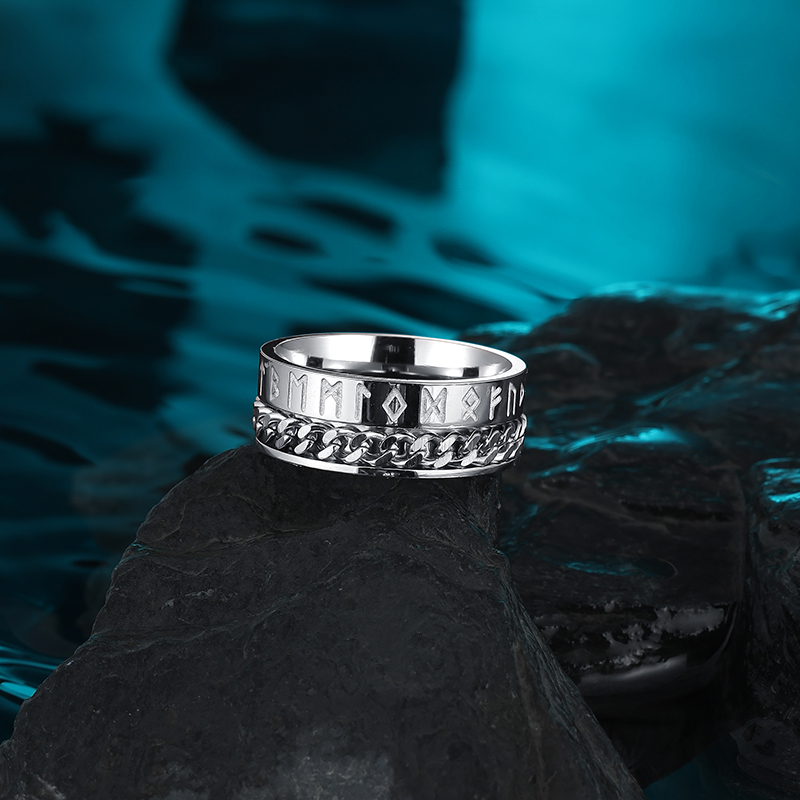 维京文字可转动戒指男款钛钢小众高级感男士潮流痞帅指环男生食指