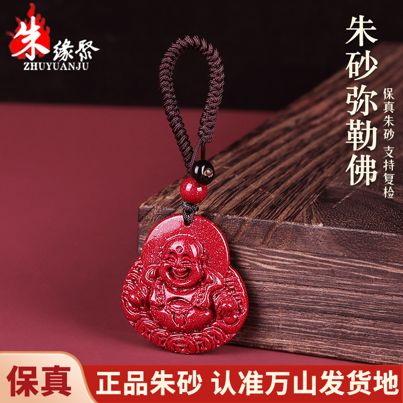 蛇年朱砂吊坠男款正品官方旗舰店晶体粉弥勒佛手机链钥匙扣挂件女