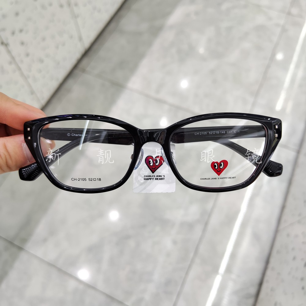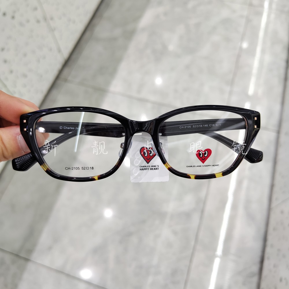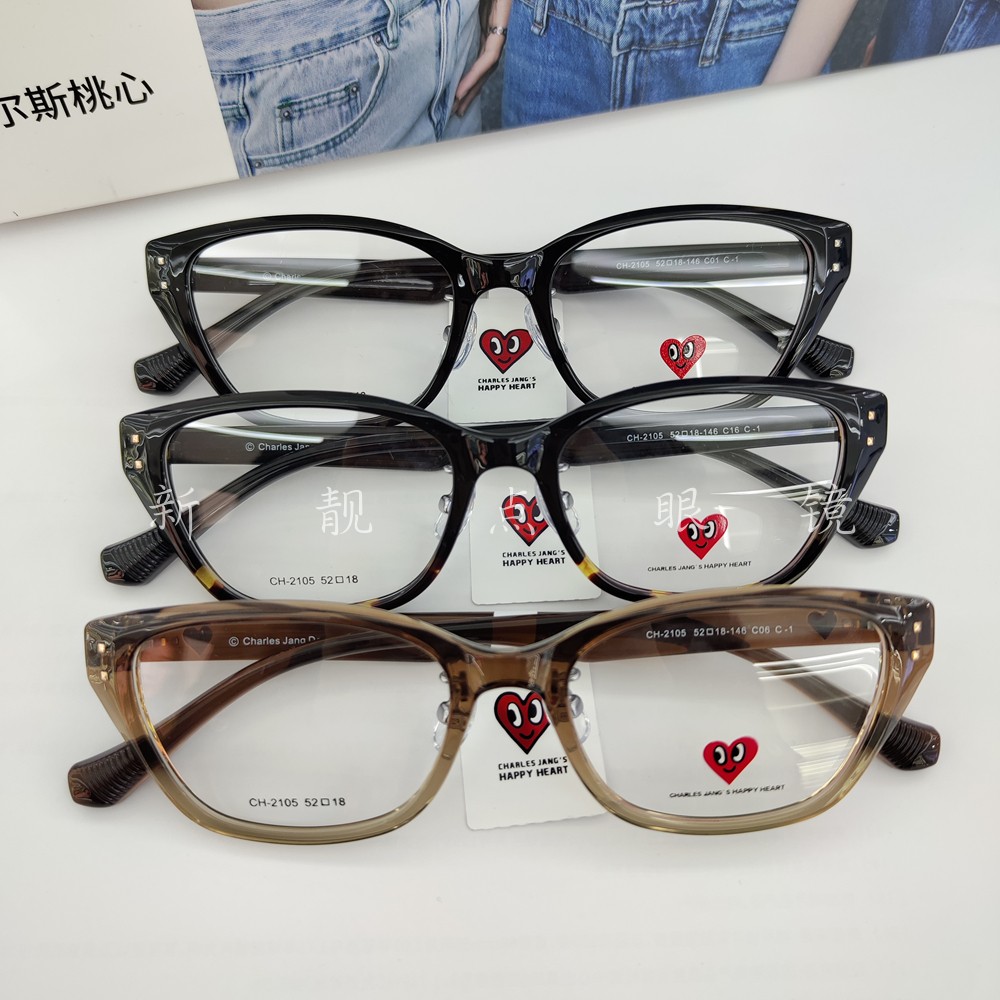 查尔斯桃心2024年复古猫眼CH2105茶色镜架素颜黑框圆脸女可配镜
