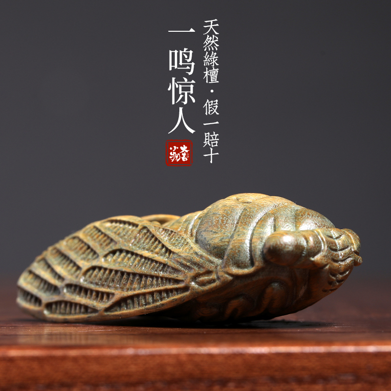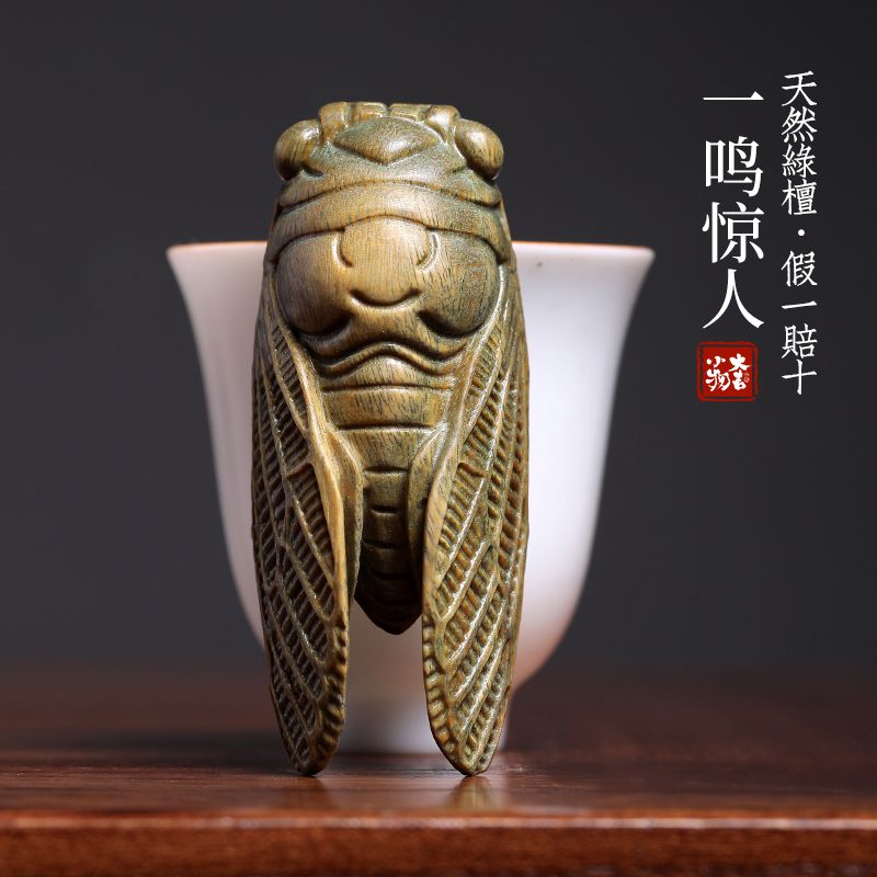 天然绿檀木一鸣惊人金蝉知了摆件文玩手把件盘玩一体雕刻桌面装饰
