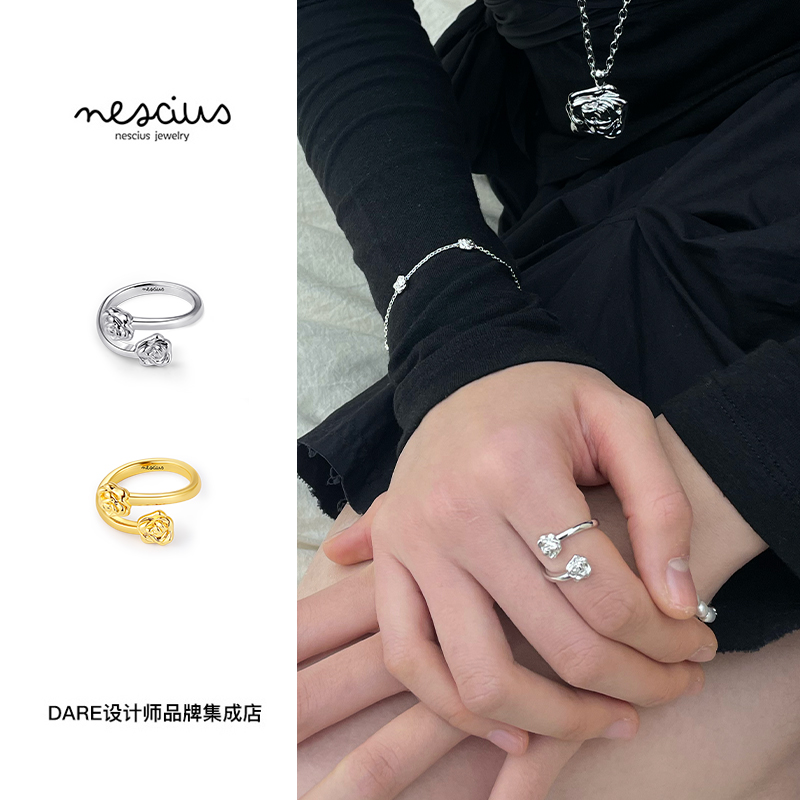 Dare买手店 nescius正品玫瑰开口戒日常通勤复古戒指可调节食指戒