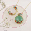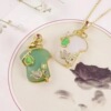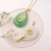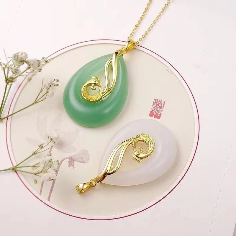 天然绿色东陵玉铜镀银吊坠金丝玉白玉镶嵌水滴毛衣链挂件直播货源