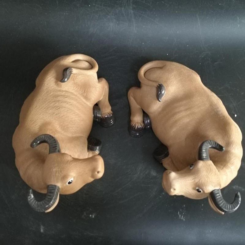 陶瓷黄色卧牛摆件招财水牛新房开业礼品假山玄关前台客厅假山摆设
