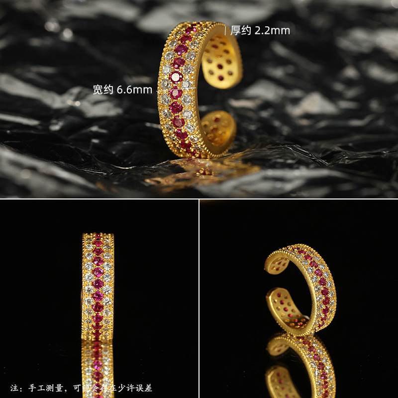 沙金镶钻红宝石戒指女小众设计轻奢保色高级感2024新款爆款指环