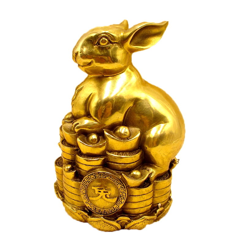 纯铜兔摆件十二生肖兔铜钱如意兔聚宝盆铜兔子工艺品家居客厅装饰