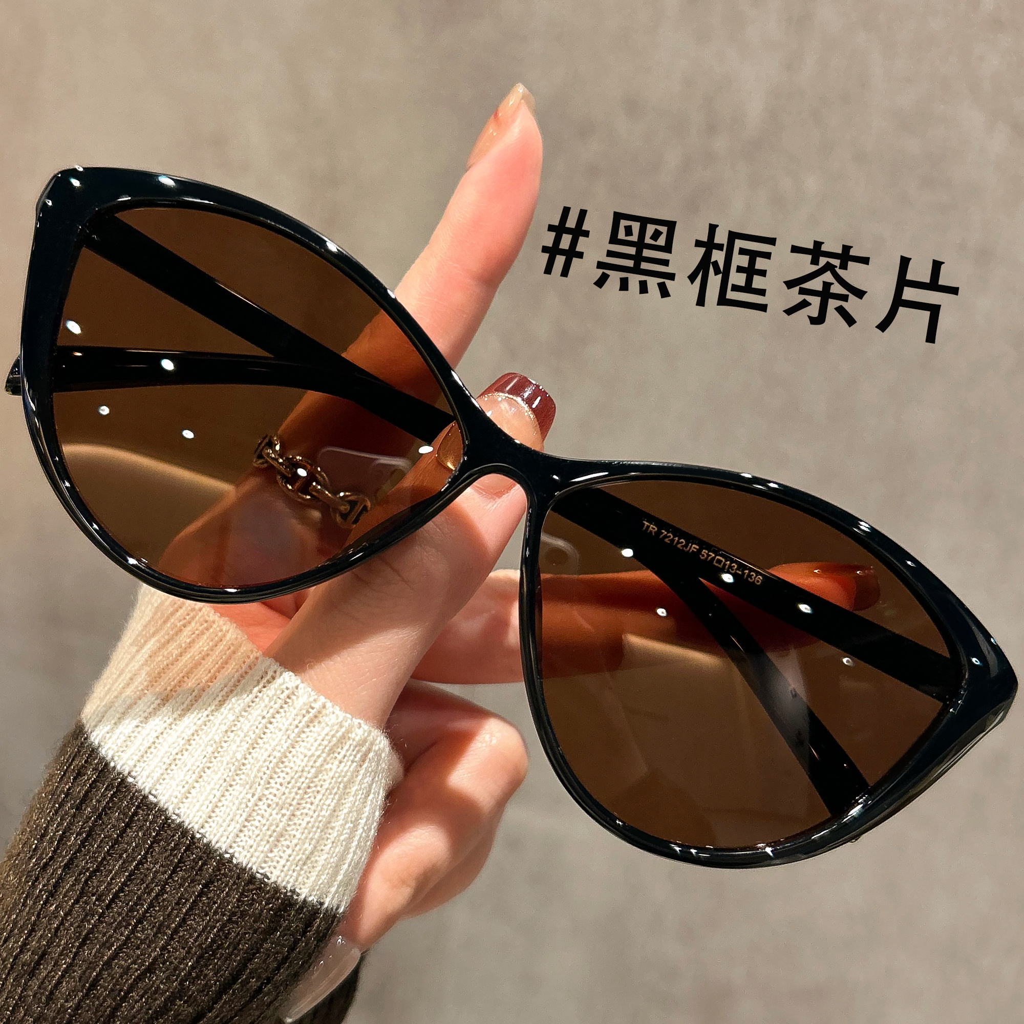 茶色猫眼大框墨镜女偏光防紫外线适合方圆脸太阳镜高级感2025新款