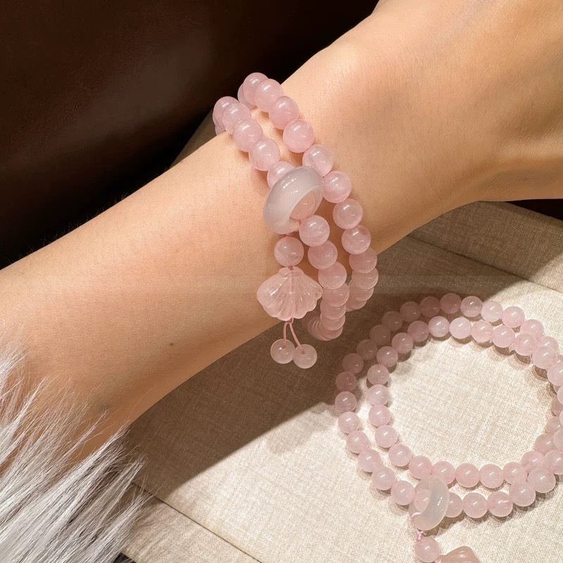 女生手链樱花落雨~清冷感粉珠贝壳手链古风中式跑环双圈叠戴手串