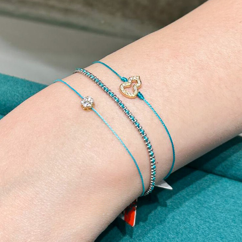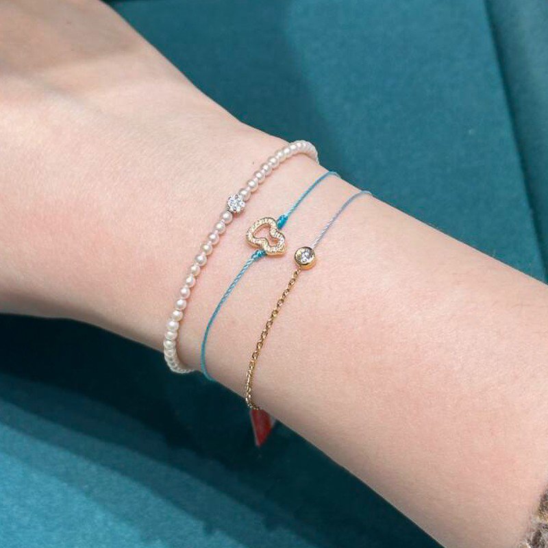 s925纯银镂空爆闪金色葫芦手绳女款水湖蓝轻奢高级感小众精致手链