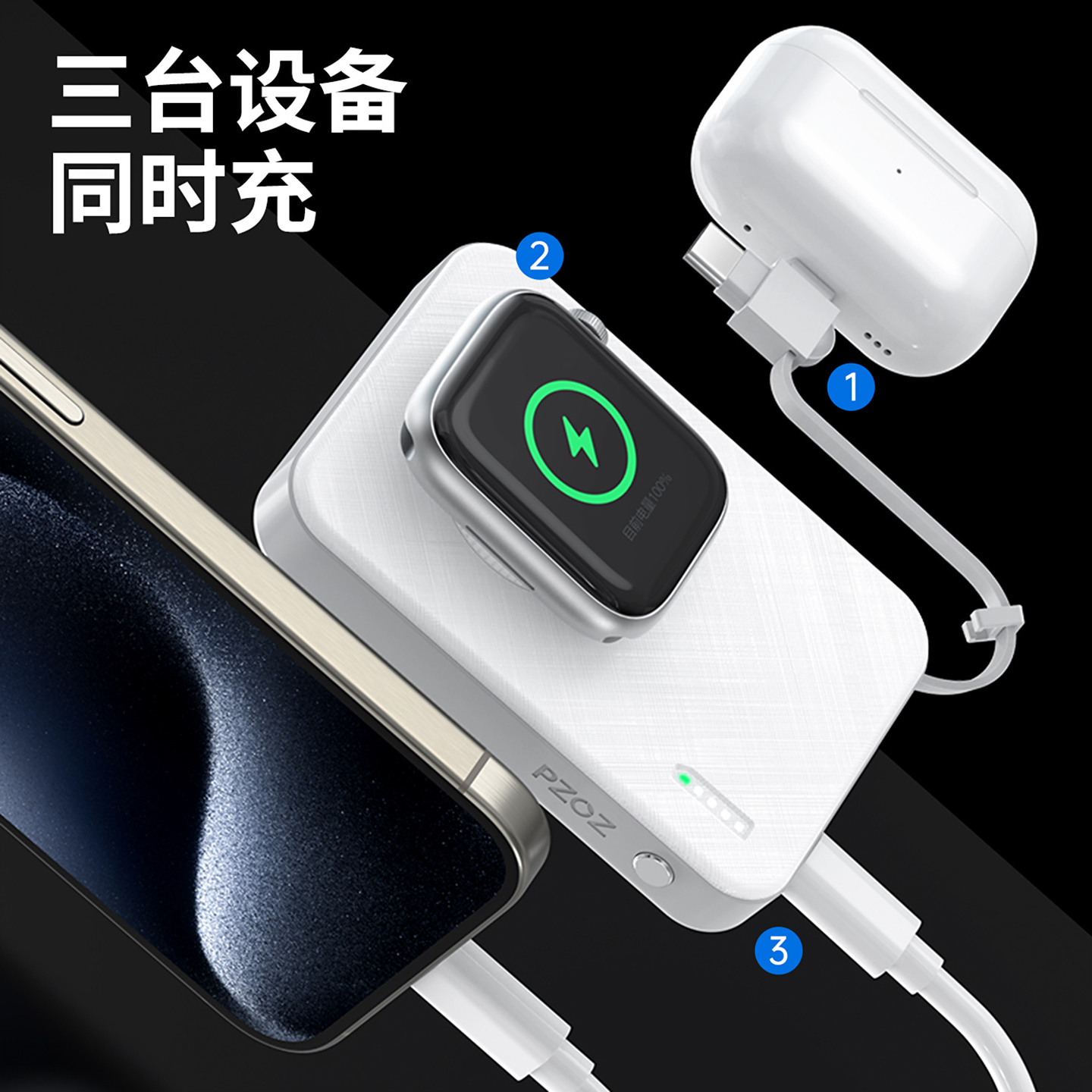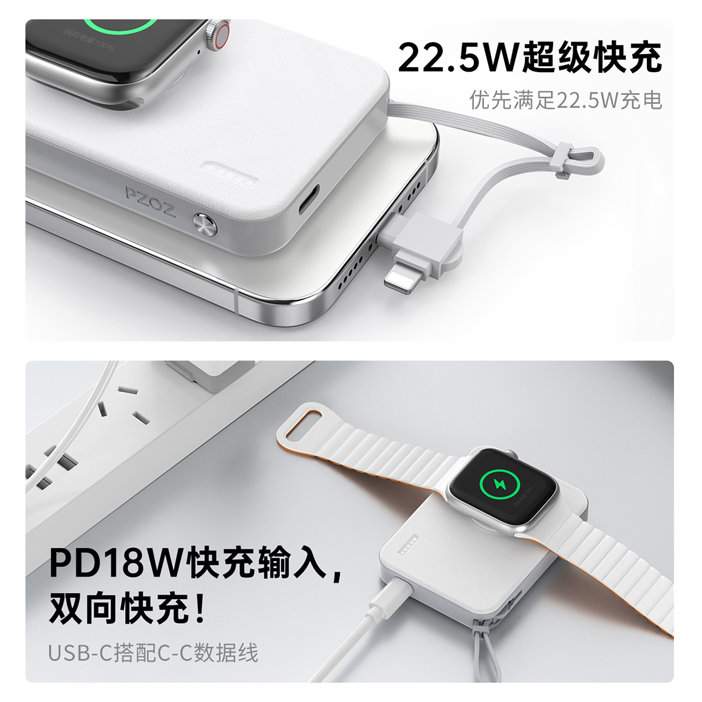 PZOZ适用苹果手表充电宝S11手机17二合一iwatch器底座applewatch10便携式Ultra3登机快充超薄口袋飞机可携带2