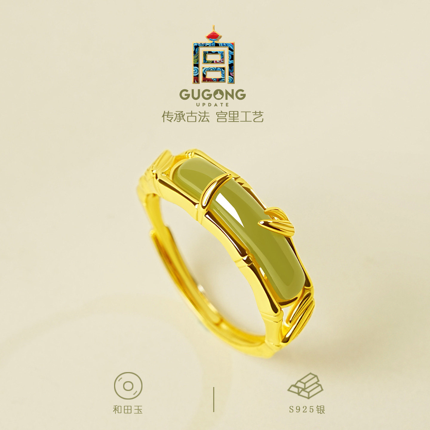 宫里上新和田玉戒指女纯银指环竹节玉石中式高级感生日礼物送妈妈