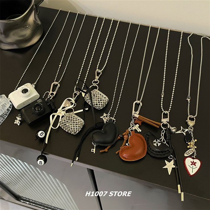 银色编织爱心丝带包包项链女长款个性小众感斜挎卫衣毛衣链男配饰