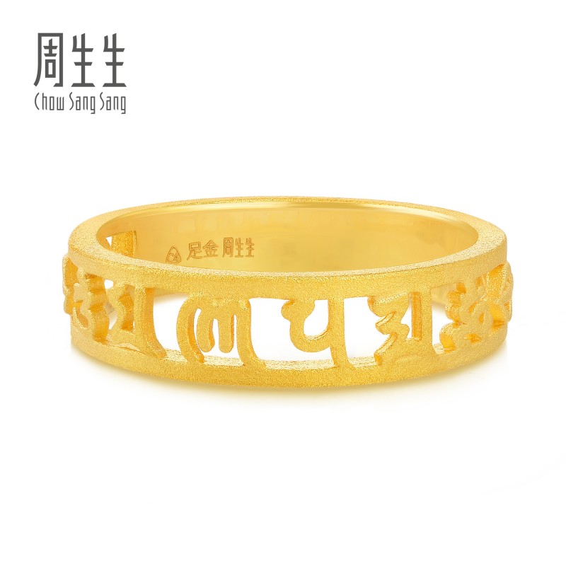 周生生戒指黄金足金文化祝福六字真言情侣款对戒指90475R