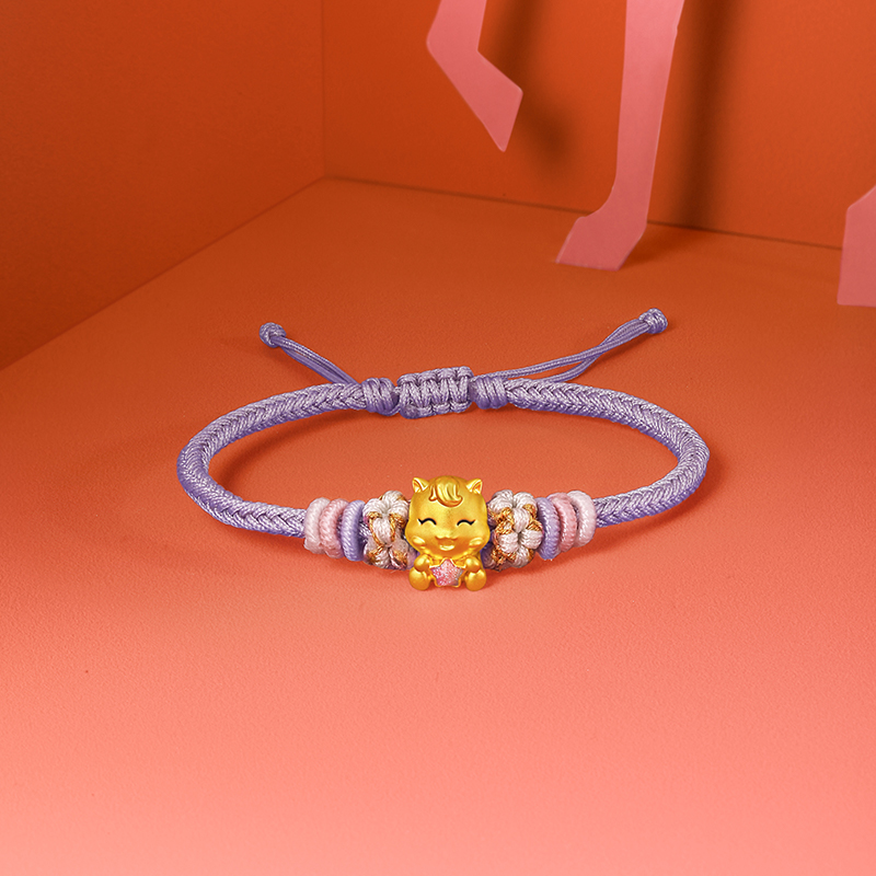 周六福黄金手绳女编绳星梦马生肖马系列5D硬金手绳珐琅定价旗舰店