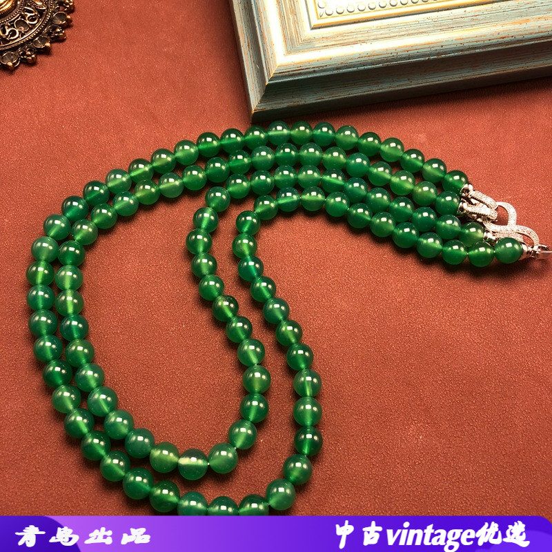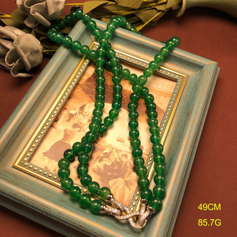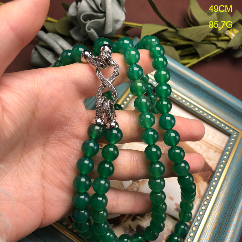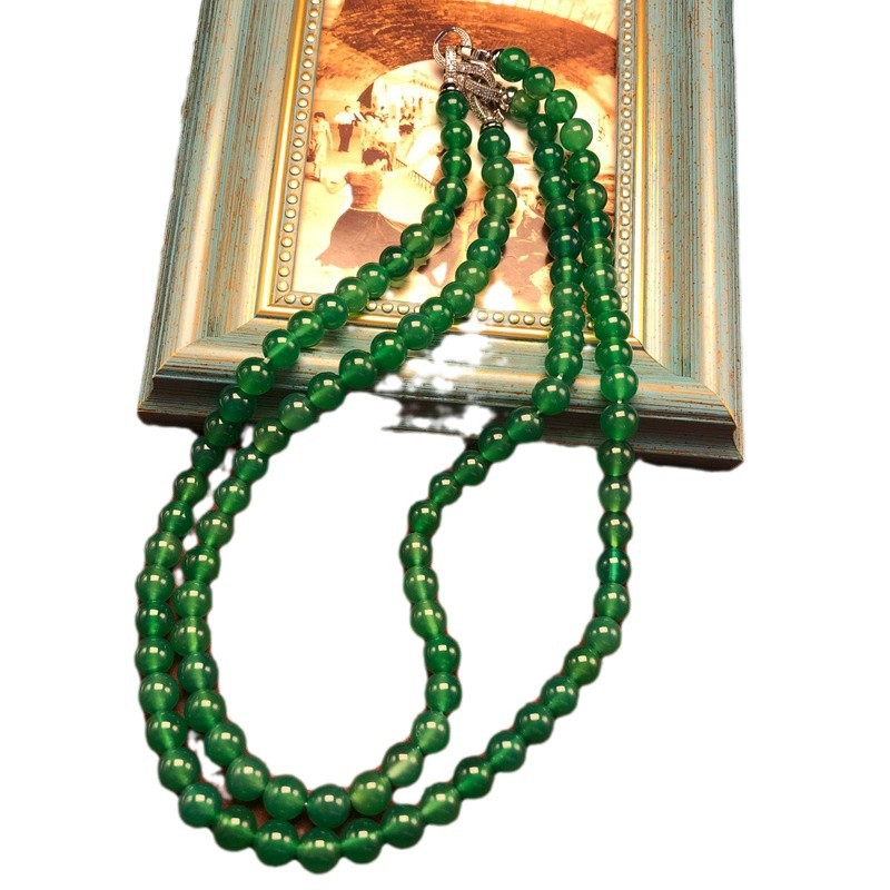 新中式短款项链国潮风气质百搭多种配戴绿玛瑙毛衣链简约串珠饰品