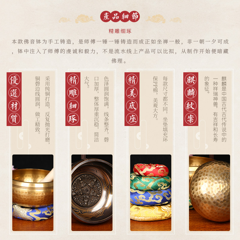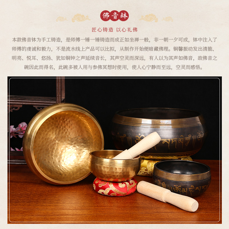 佛音钵手工佛音碗瑜伽冥想铜颂钵铜磬法器盂尼泊尔铜钵经文钵梵音