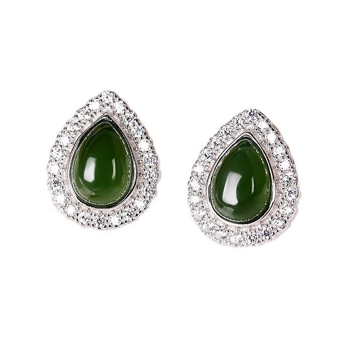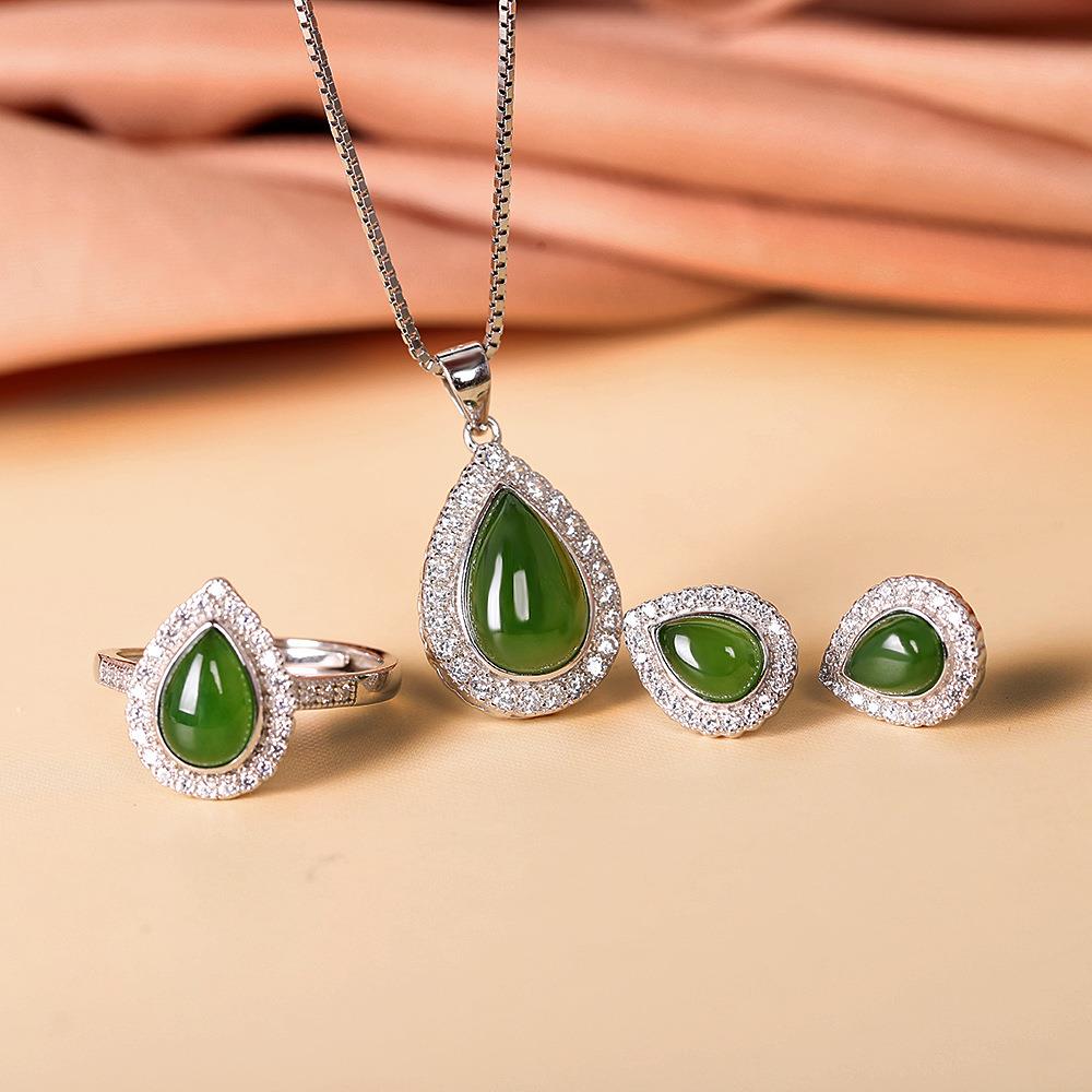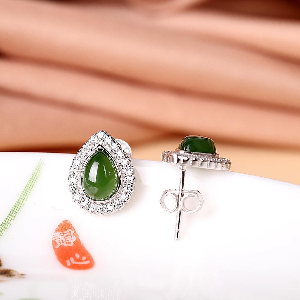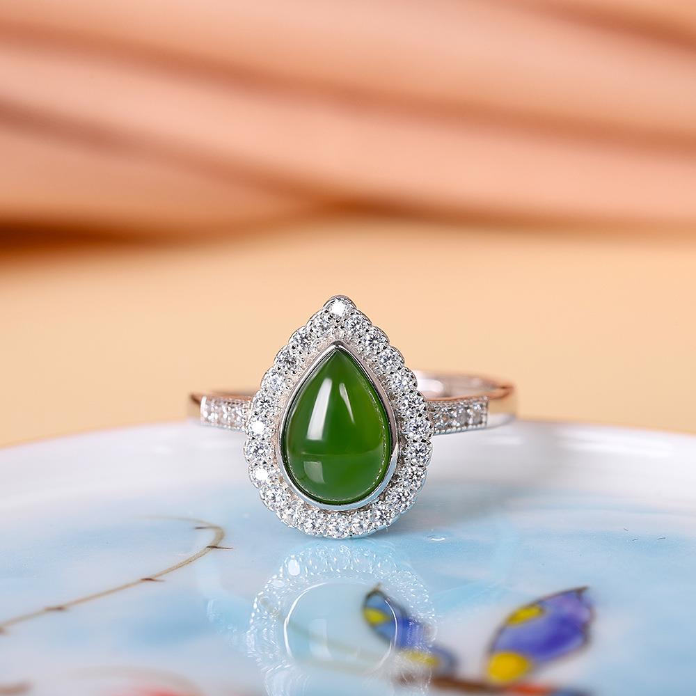 本命年时尚小清新手饰925银镶水滴和田碧玉戒指唯美气质指环礼物