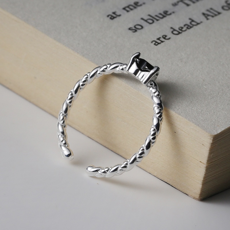 美汝仙 纯银戒指女黑色爱心肌理纹路小众设计轻奢时尚个性轻奢高