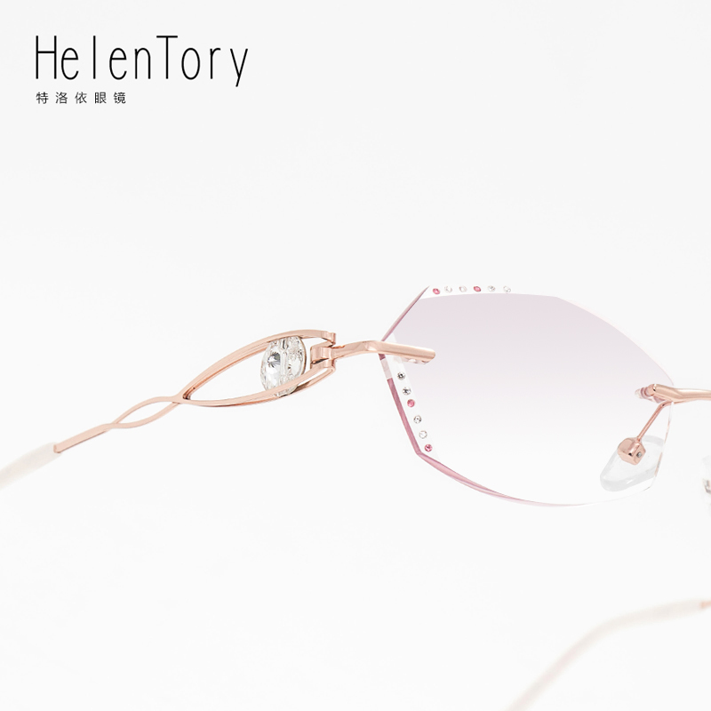 配防蓝光时尚无框钻石切边近视眼镜成品女网红款显脸小框镶钻素颜