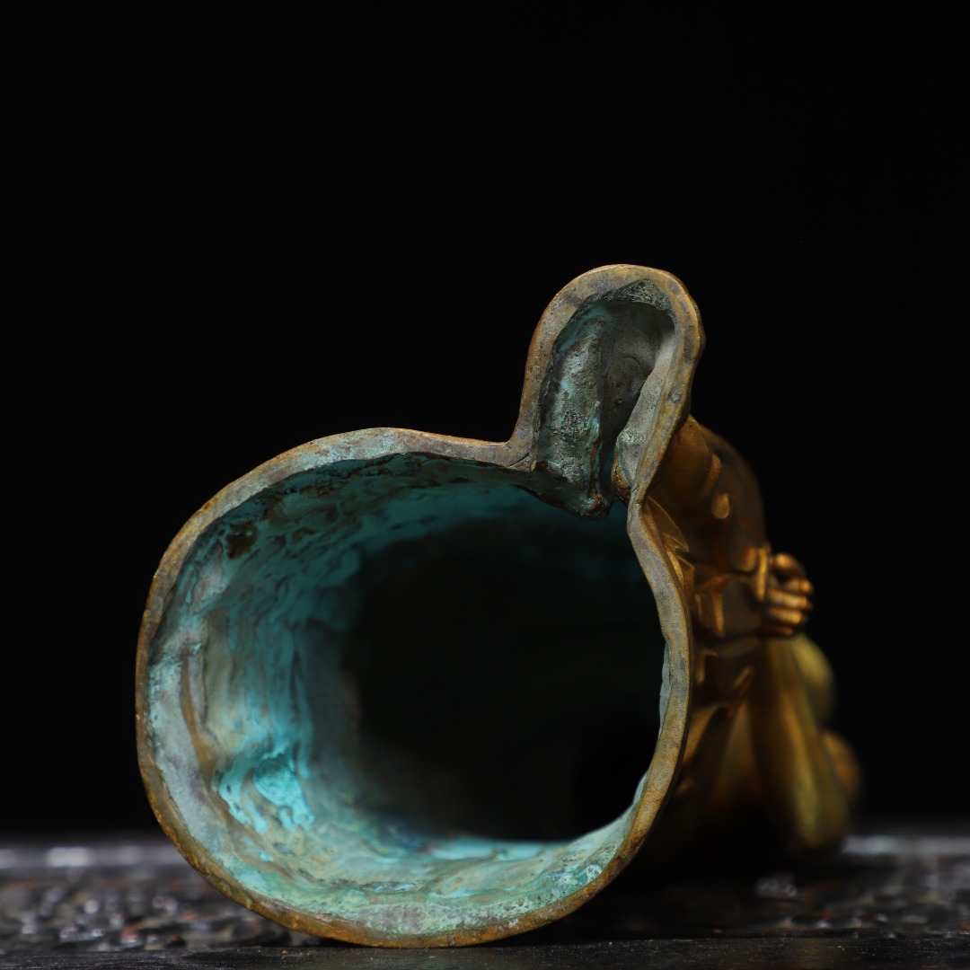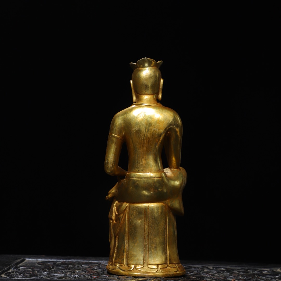 藏传宝冠思惟弥勒菩萨摆件黄铜全鎏金手工家用供奉桌面佛像装饰品