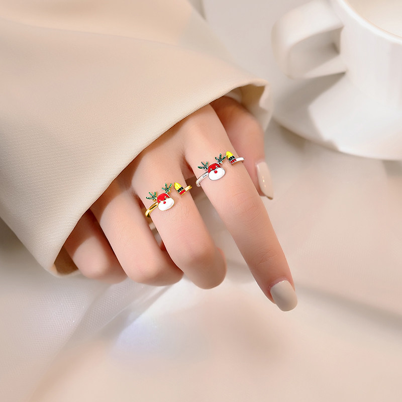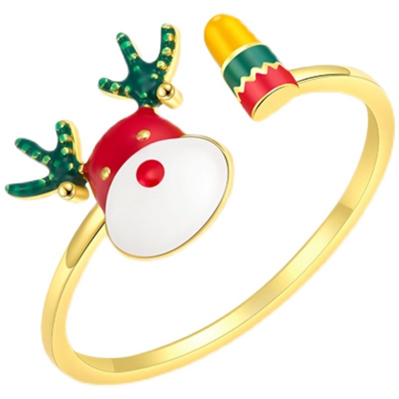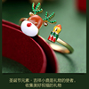 s925纯银圣诞麋鹿戒指女一鹿有你指环轻奢小众设计感冬季开口食指