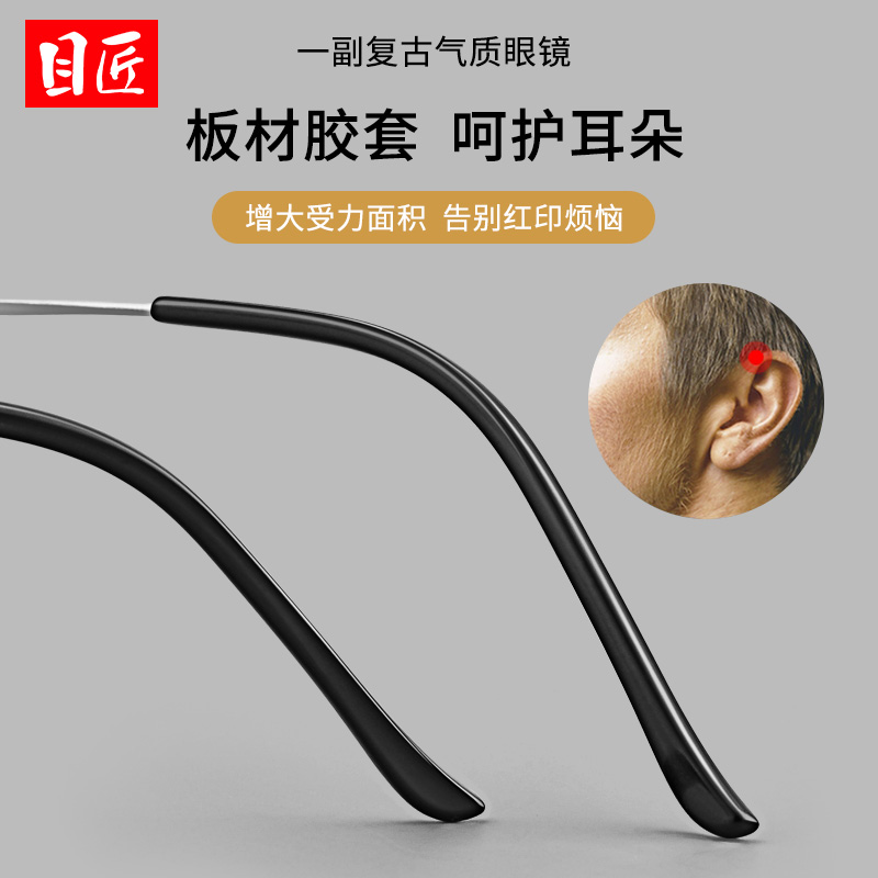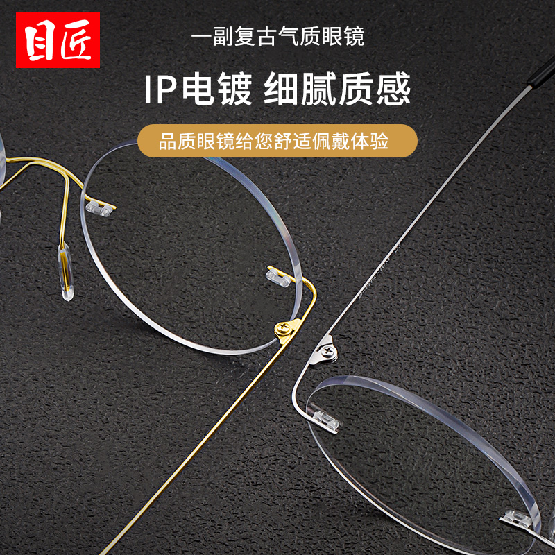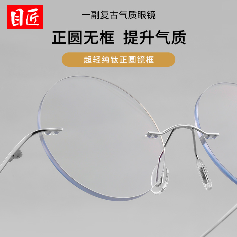 复古无框近视眼镜框男款可配度数超轻纯钛圆形小框无边框圆框镜架