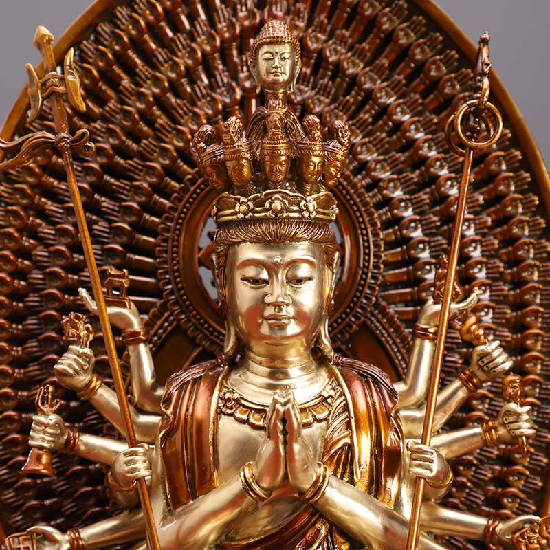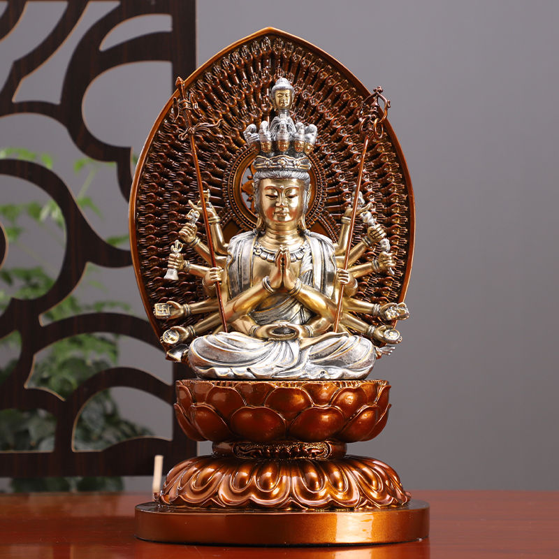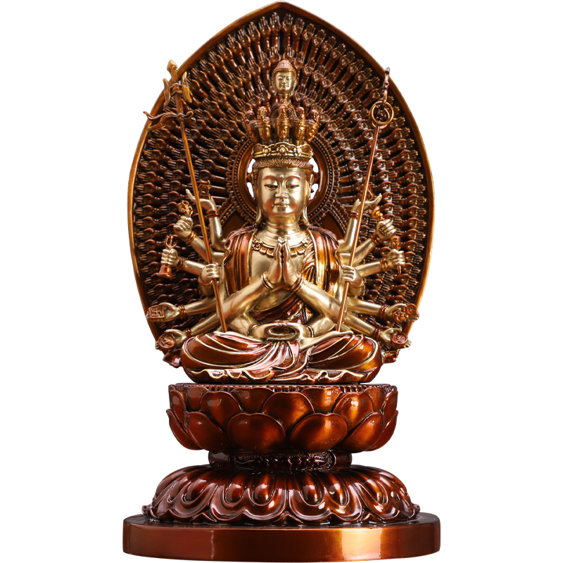 圆通佛具 千手观音佛像铜像摆件 黄铜仿古千手观音菩萨佛像本命佛