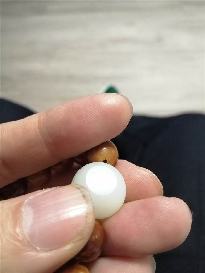 新疆和田玉籽料库克白玉珠子手串(一级白细)