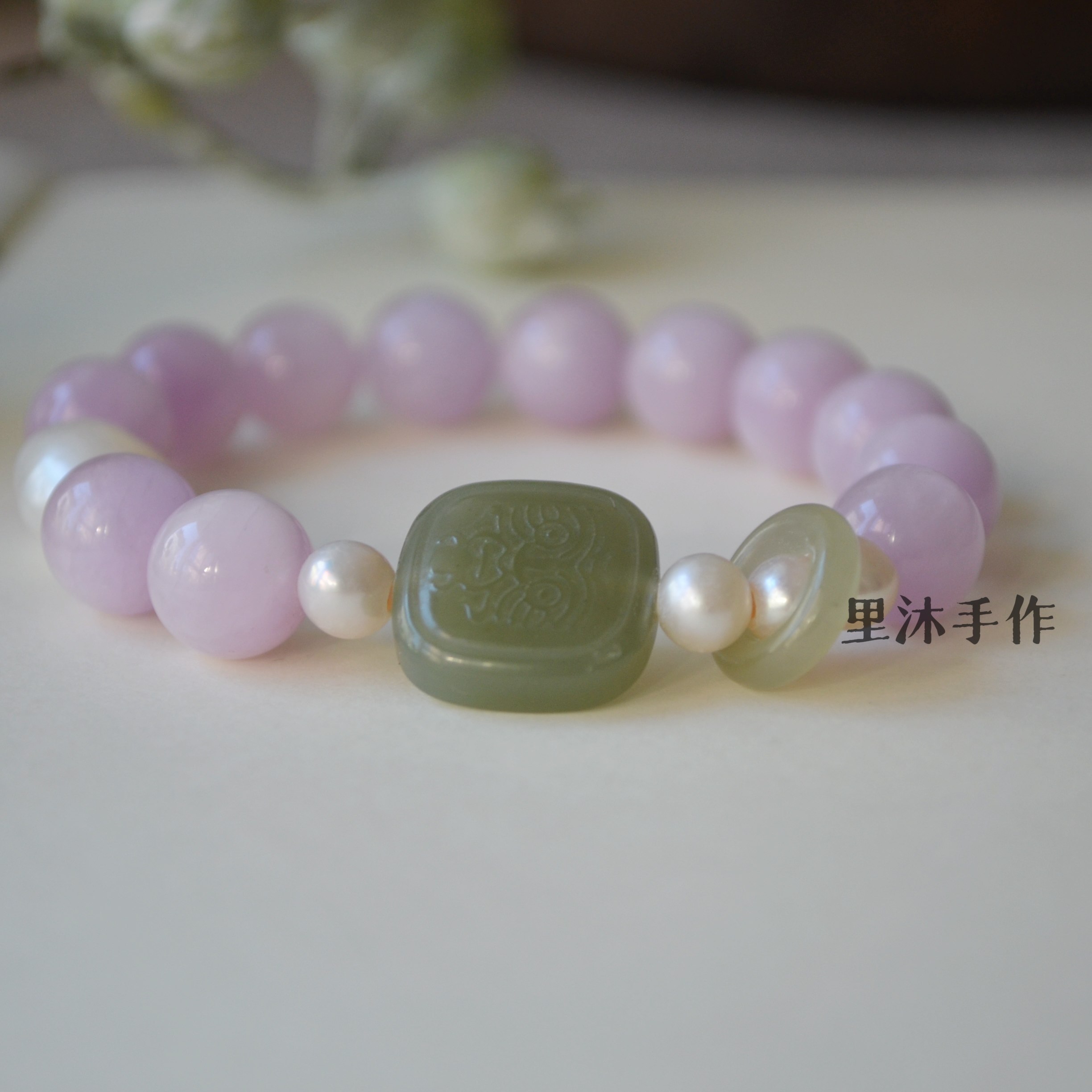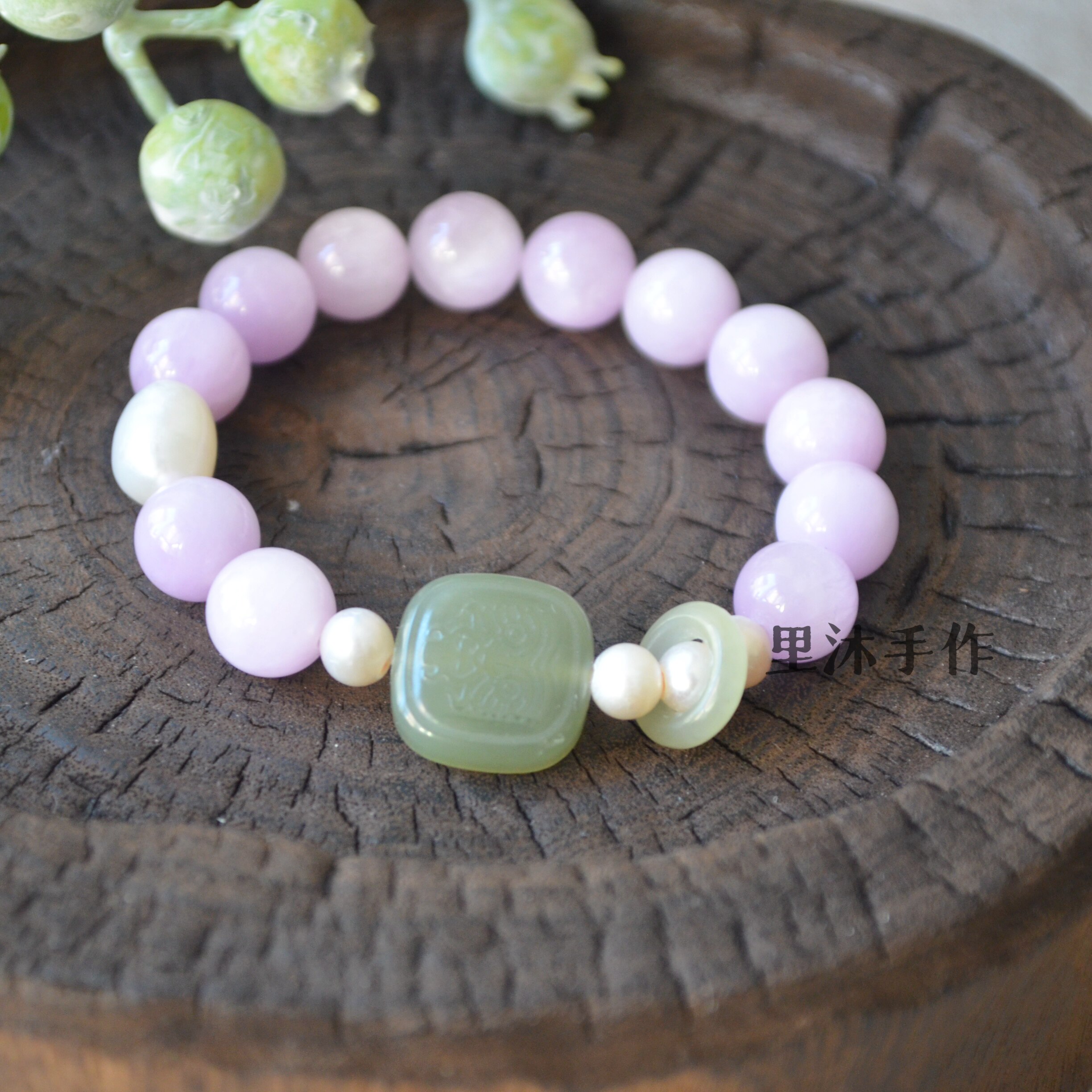 原创设计紫锂辉手串和田玉淡水珍珠手链女扎基拉姆转运保佑财运