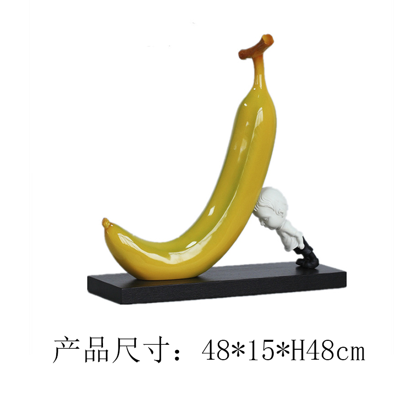 简约现代创意小孩子头顶黄色香蕉水果可爱个性Q客厅桌面装饰品摆