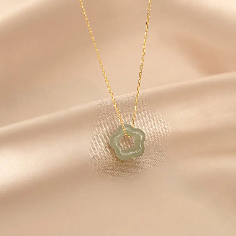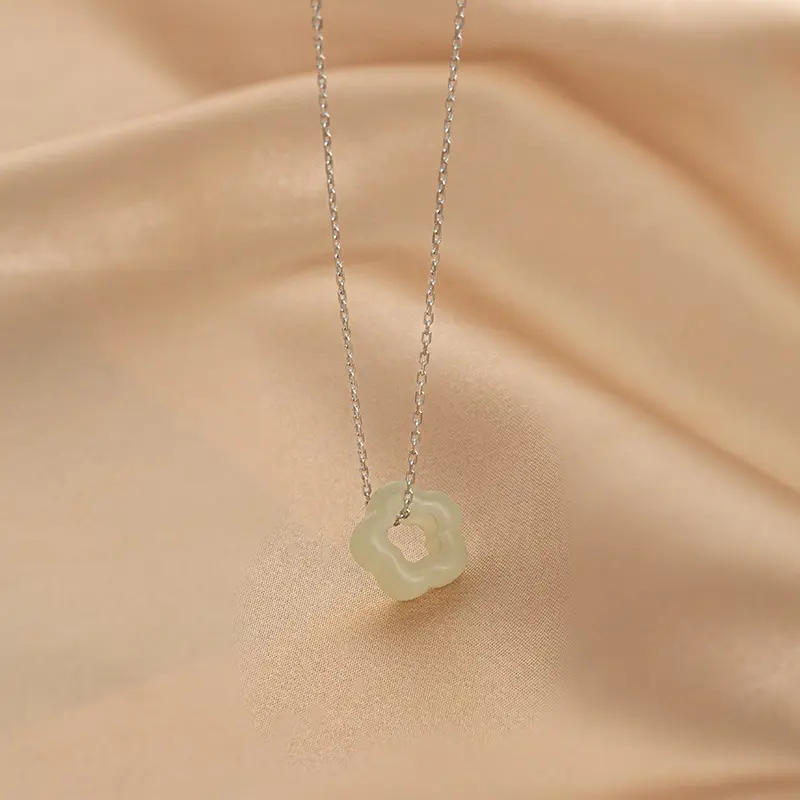 和田玉梅花吊坠女士纯银锁骨链子镂空精致极细项链复古风气质礼物